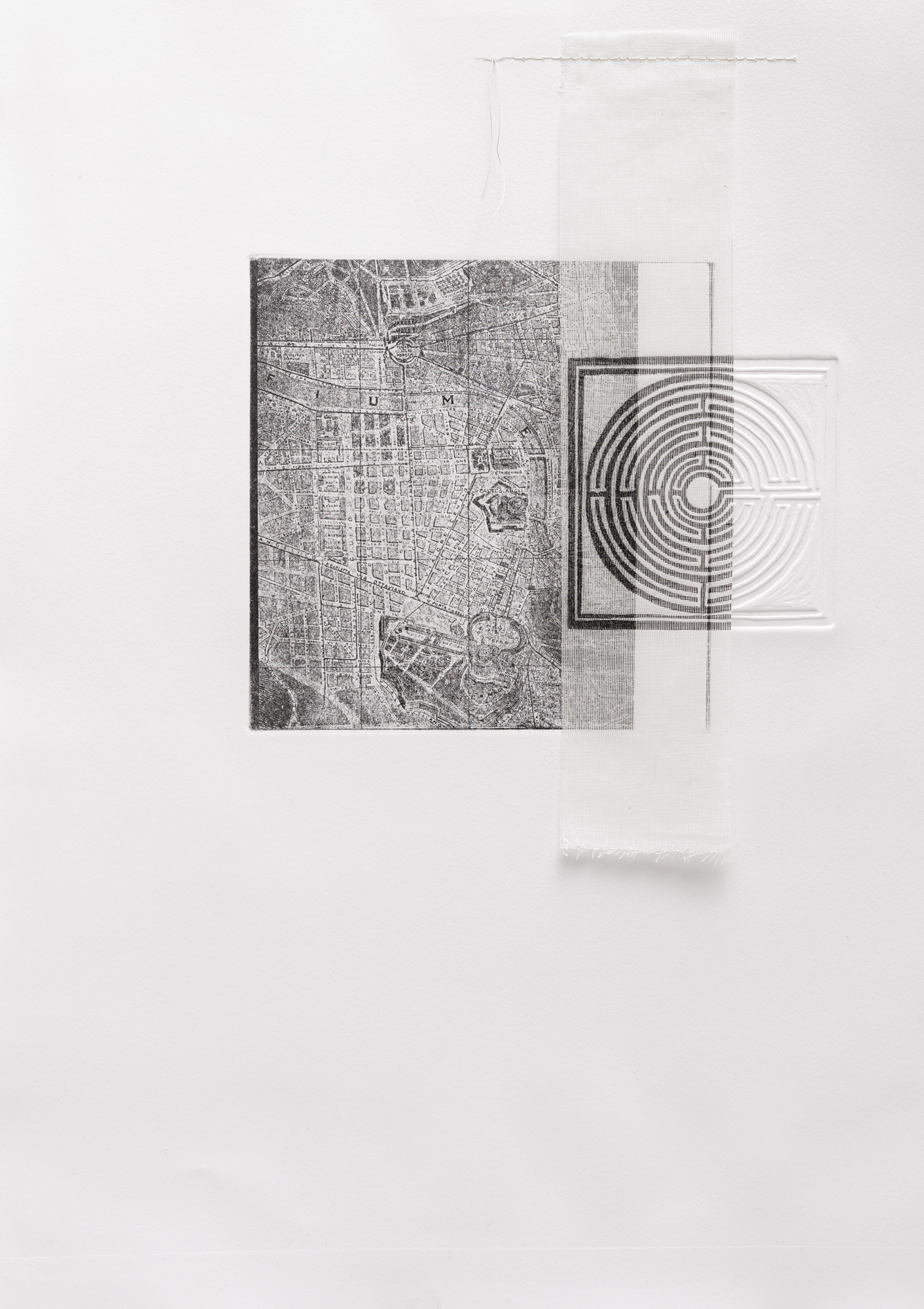 L’opera accosta due diverse interpretazioni del viaggio: la prima è quella del viaggio che ciascuno si costruisce su una mappa, scegliendo una città per motivi legati al cuore, ai sentimenti, alla storia stratificatasi nel tempo sulle pietre di quella città; la seconda riguarda un viaggio che richiama il labirinto quale viaggio interiore e intimo. Entrambe le visioni sono connesse tra di loro e si sovrappongono: questo è simbolicamente rappresentato dalla trama della tarlatana e dalla sovrapposizione che la stessa crea con le tre diverse stampe.