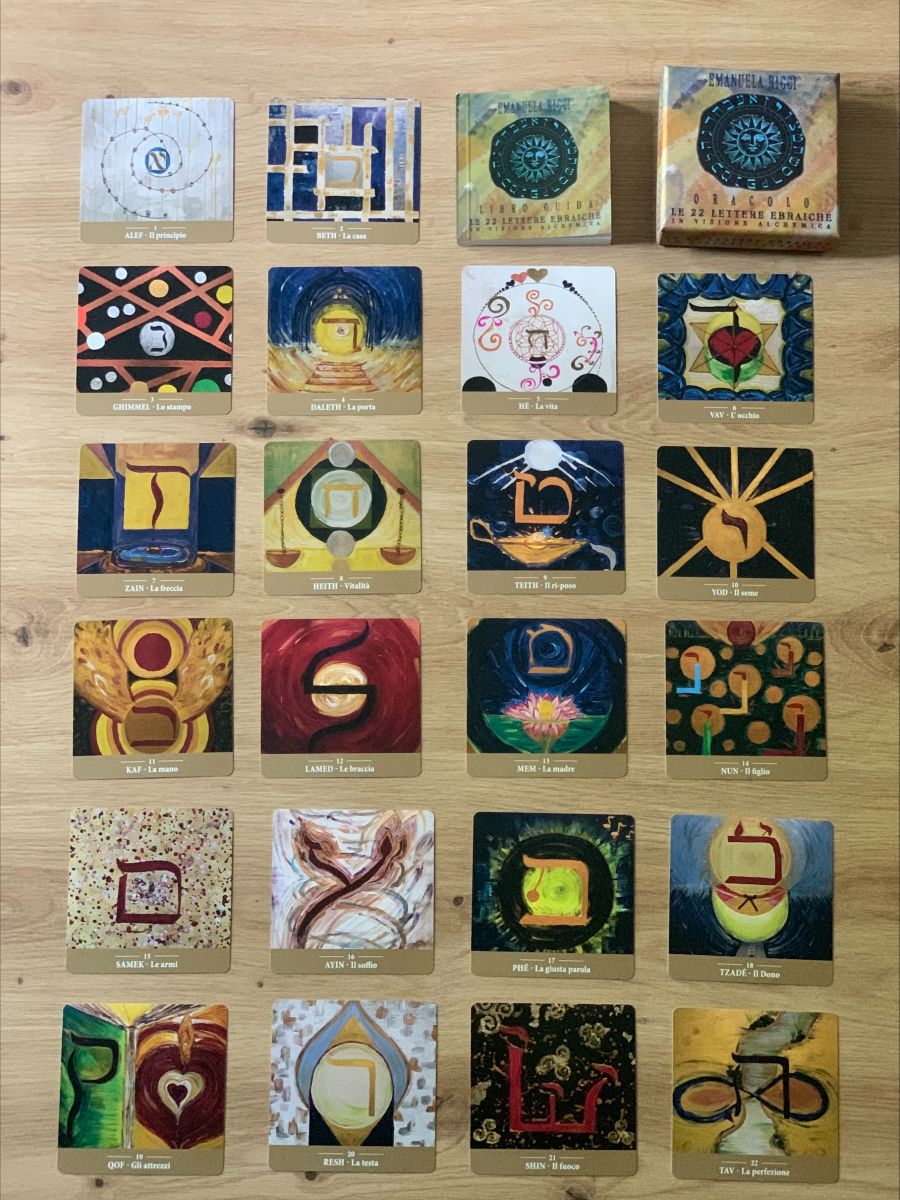 Queste 22 tele hanno acquisito un nuovo valore, diventando le principali protagoniste di un progetto più ampio: un Oracolo composto da un mazzo di carte ed un libro guida contenente la spiegazione sul significato di ogni singola lettera.