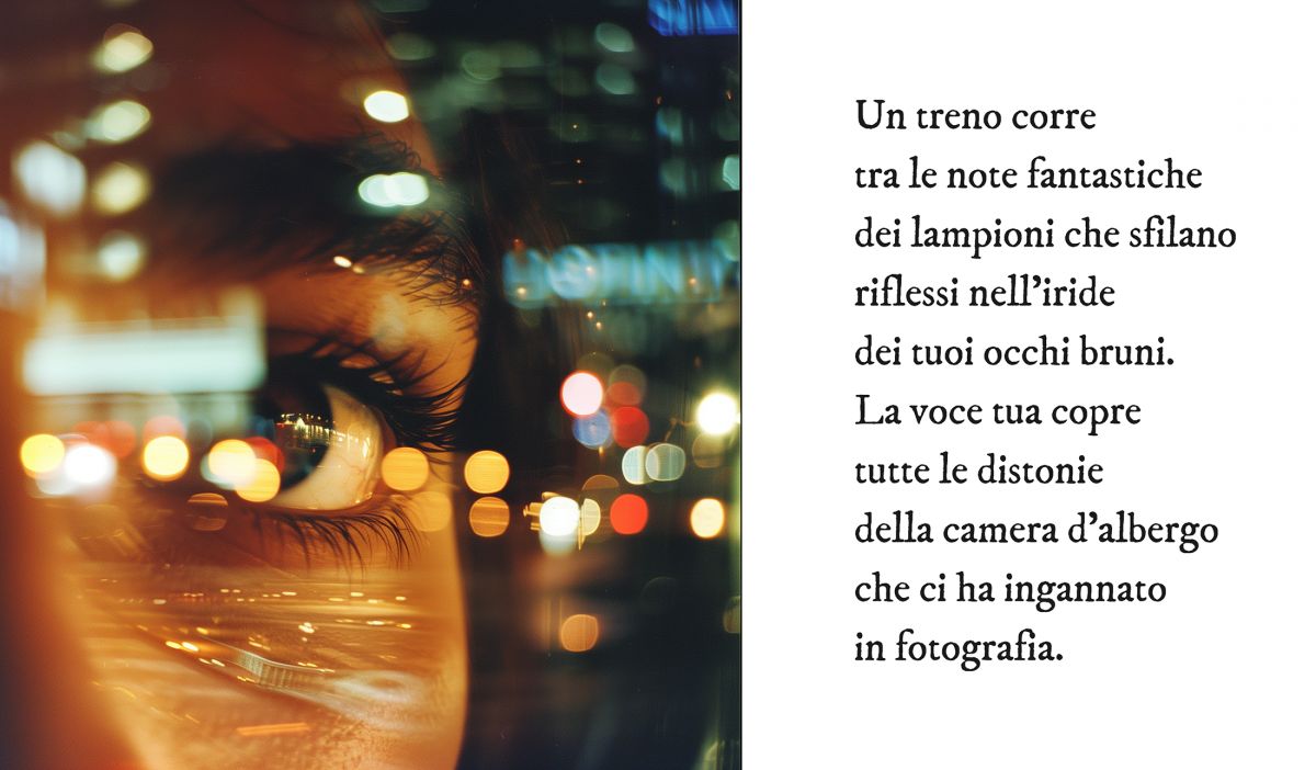 L’immagine si compone di un testo scritto dall’autore e da un’immagine generata con la tecnica dell’intelligenza artificiale. Il testo costituisce il prompt dell’immagine.