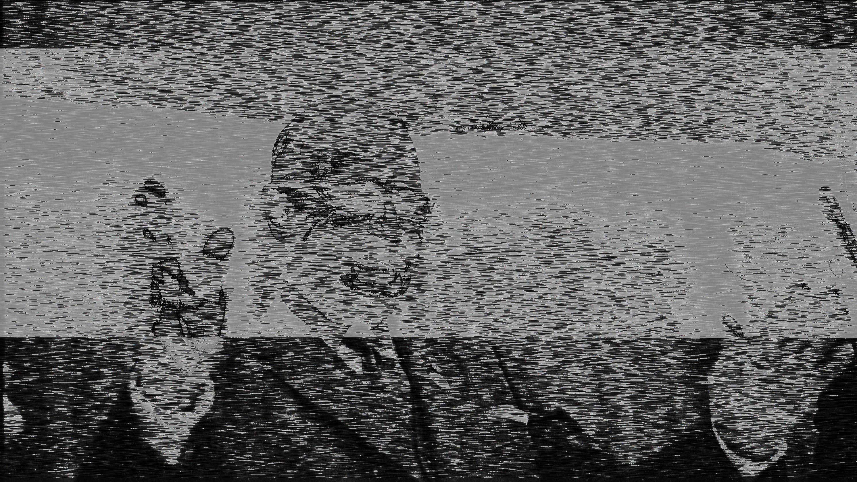 del 33° Presidente degli Stati Uniti d’America Harry S.Truman, responsabile dello sgancio della prima bomba atomica su Hiroshima e della seconda su Nagasaki, mentre il sonoro è costituito dall’ibridazione di dati audio dell’esplosione della bomba atomica ed estrapolati dal suo discorso alla Nazione.