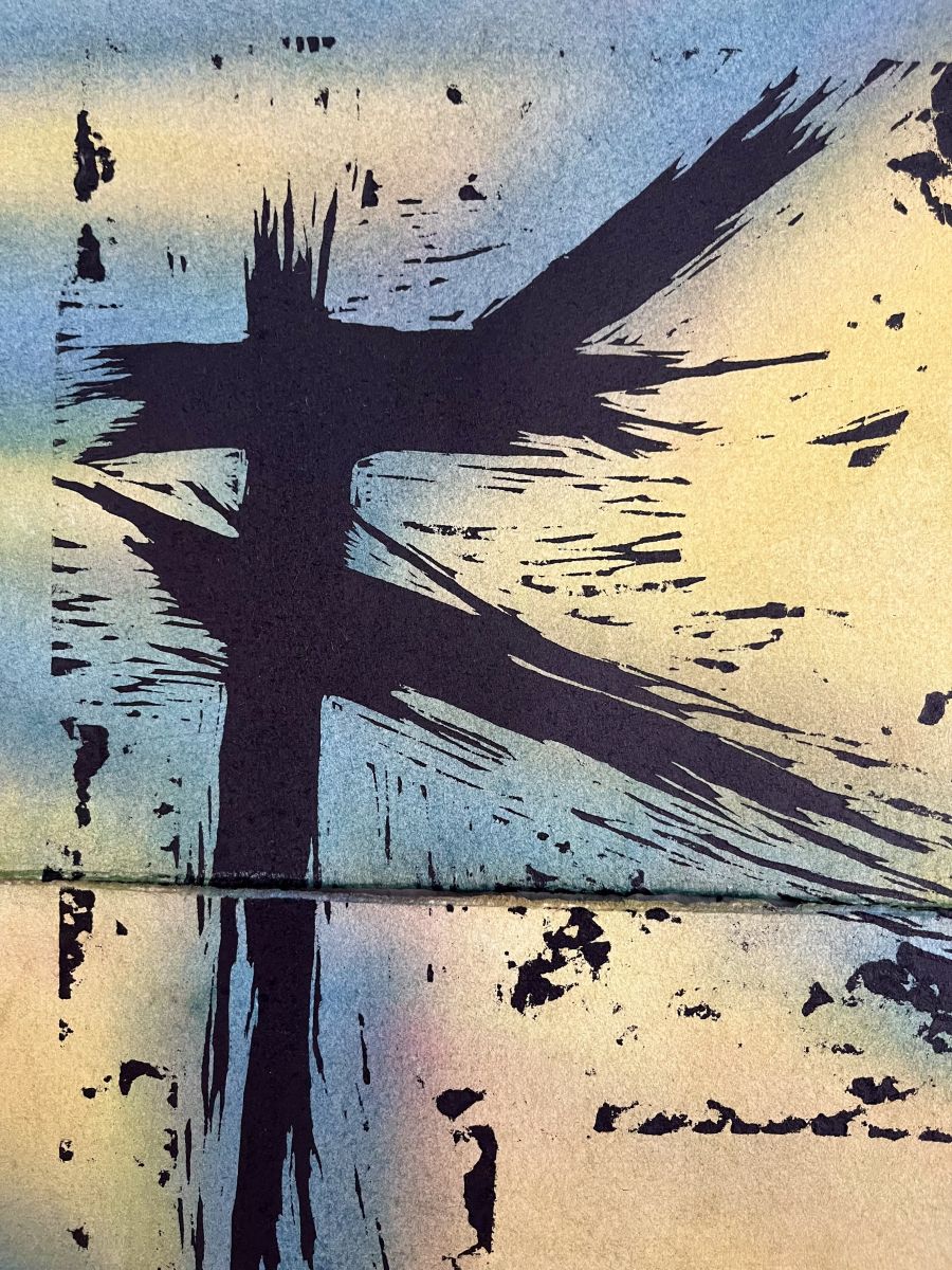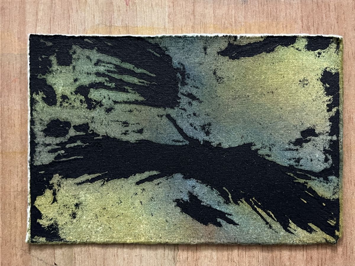 xilografia, acquerello e inchiostro tipografico su carta da stampa, carta