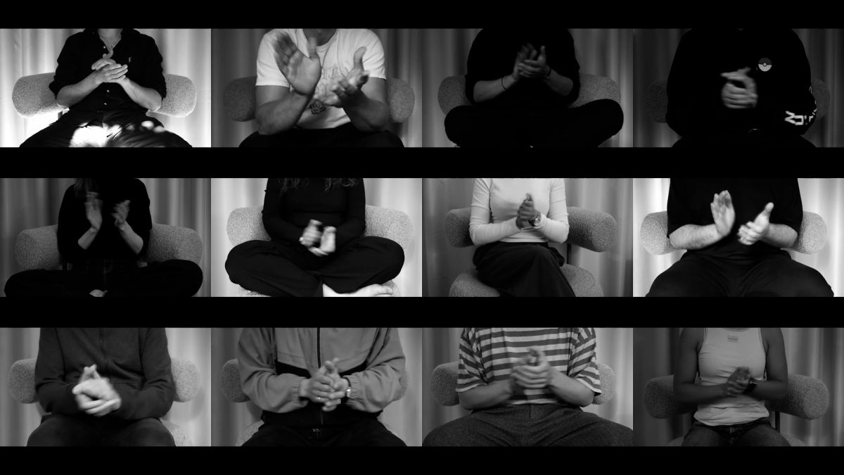 “Schön.” is a multi-channel video installation composed of twelve parallel projections— each showing only the hands of an individual engaged in continuous, synchronized applause. The number twelve echoes both the structure of judgment (a jury of twelve) and spiritual symbolism (the twelve disciples), situating the act of applause in a liminal space between authority and faith.