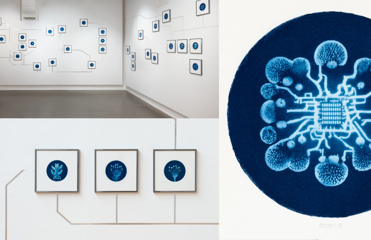 Il progetto consiste in una raccolta di 256 cianotipie generate con strumenti di intelligenza artificiale e stampate con l’uso di un’antica tecnica fotografica dell’ottocento. Immagini sintetiche, figlie di meccanismi di calcolo astratti, riscoprono le loro radici fotografiche grazie all’interazione con luce e materia. Illustrazioni fotografiche a cavallo tra scienza e fantasia raccontano l’evoluzione del silicio, alla ricerca di nuove funzioni biologiche e relazioni col mondo fisico. L’immagine emerge così dal regno digitale e acquista nuova vita.