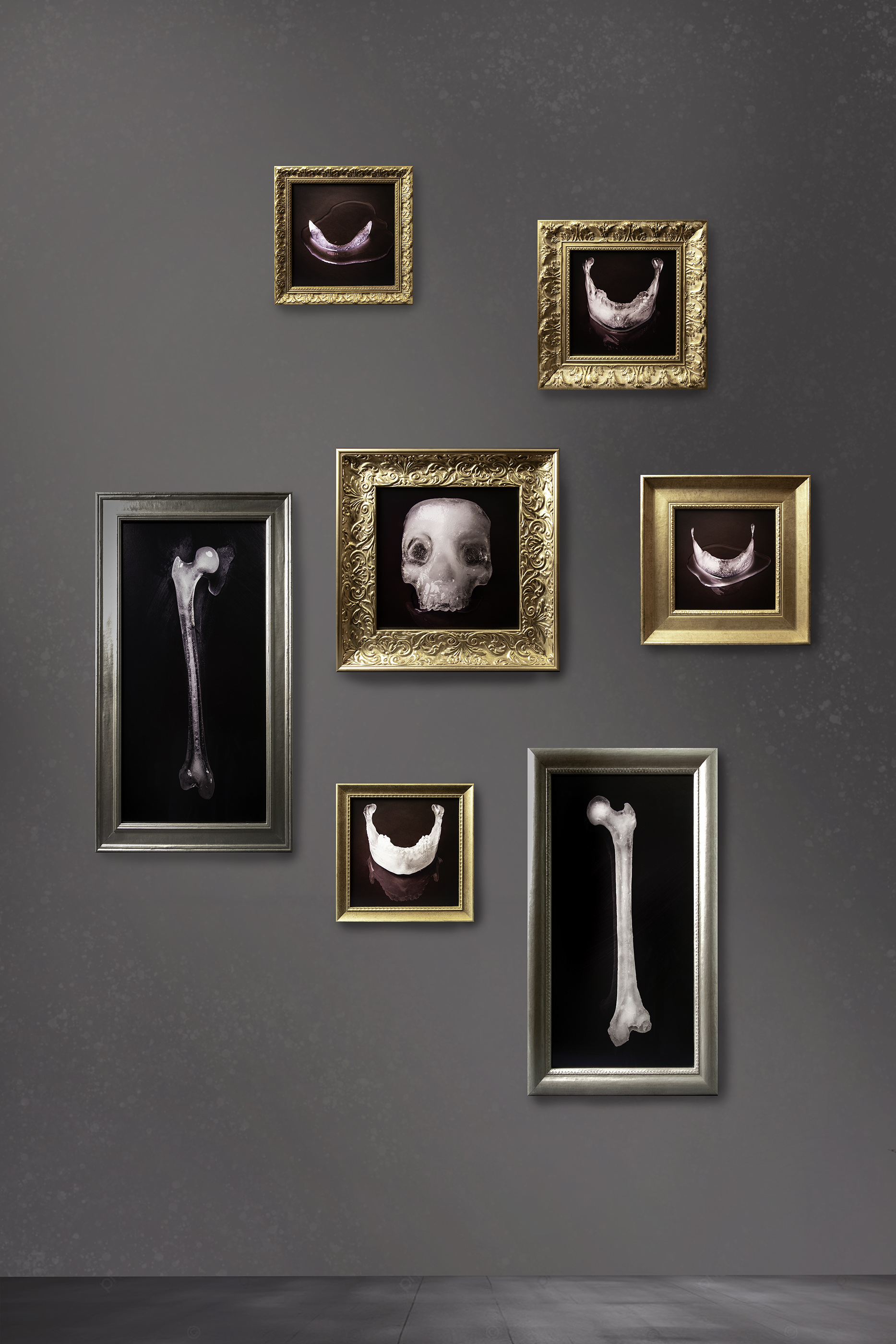 La materia, il ghiaccio, rende le forme anatomiche luminose e trasparenti ma allo stesso tempo fragili e temporanee. Secondo il buddismo e nella cultura sciamanica la meditazione sullo scheletro, che viene appunto visualizzato come lucente e trasparente, aiuta contemplare l’idea che tutto sia impermanente così da lasciare andare gli attaccamenti, le resistenze e le paure. La cultura popolare religiosa occidentale invece, individuando nelle ossa la parte anatomica soggetta a trasformazione più lenta, ne celebra l’apparente durevolezza nei reliquiari e nelle immagini religiose in generale.