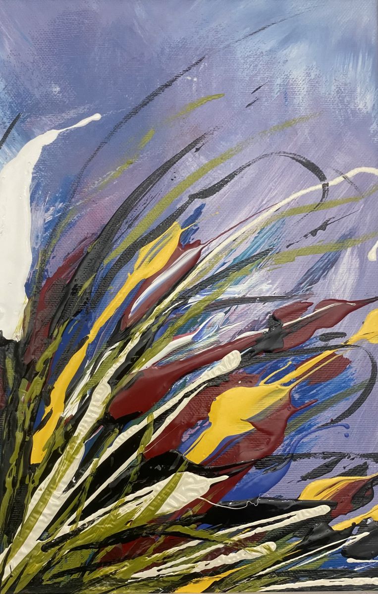 C’è una larga partecipazione alla natura nell’ esecuzione dei propri dipinti. Colori in trame fitte si muovono spinte dal vento verso l’infinito, verso la luce, verso le meraviglie del mondo e della vita. Alla natura, ai fiori, all’ erba alta vi aggiunge una personale interpretazione che sviluppa una tendenza al movimento, alla meditazione della poesia, alla riflessione dell’ intimo, alla ricerca di una luce che divenga valore stabile . La pittura dinamica prende spunto da visioni campestri per divenire ricerca del proprio intimo.