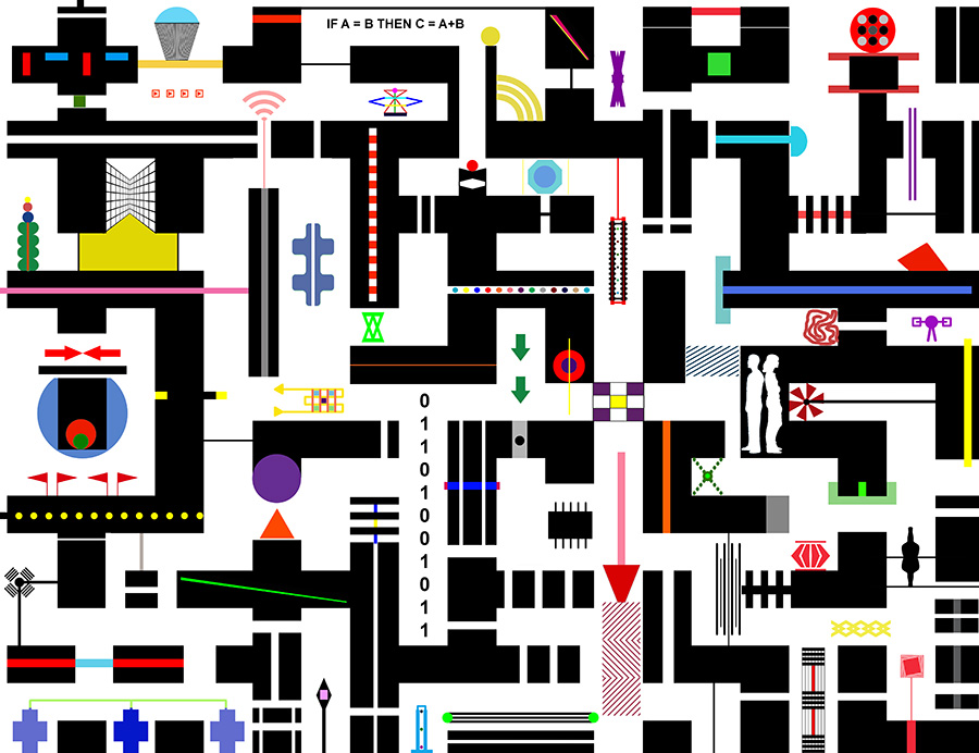 La serie delle opere Città Robotiche non sono alto che la trasposizione in immaginario artistico della contemporaneità formata dall’integrazione di macchine e circuiti, di reti e di servizi dove passano le informazioni della nostra vita in forma digitale e viene raccontata con l’ausilio della stessa