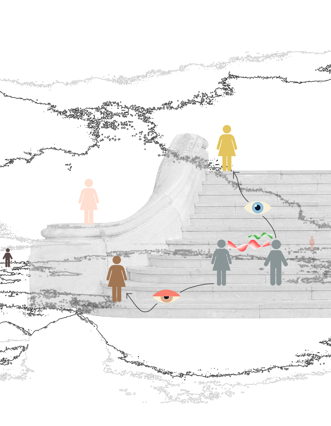 Questa dinamica è rappresentata attraverso l’uso simbolico di tre colori: oro, argento e bronzo, proprio come nel medagliere olimpico, e da una scala, anch’essa simbolo di una graduatoria.