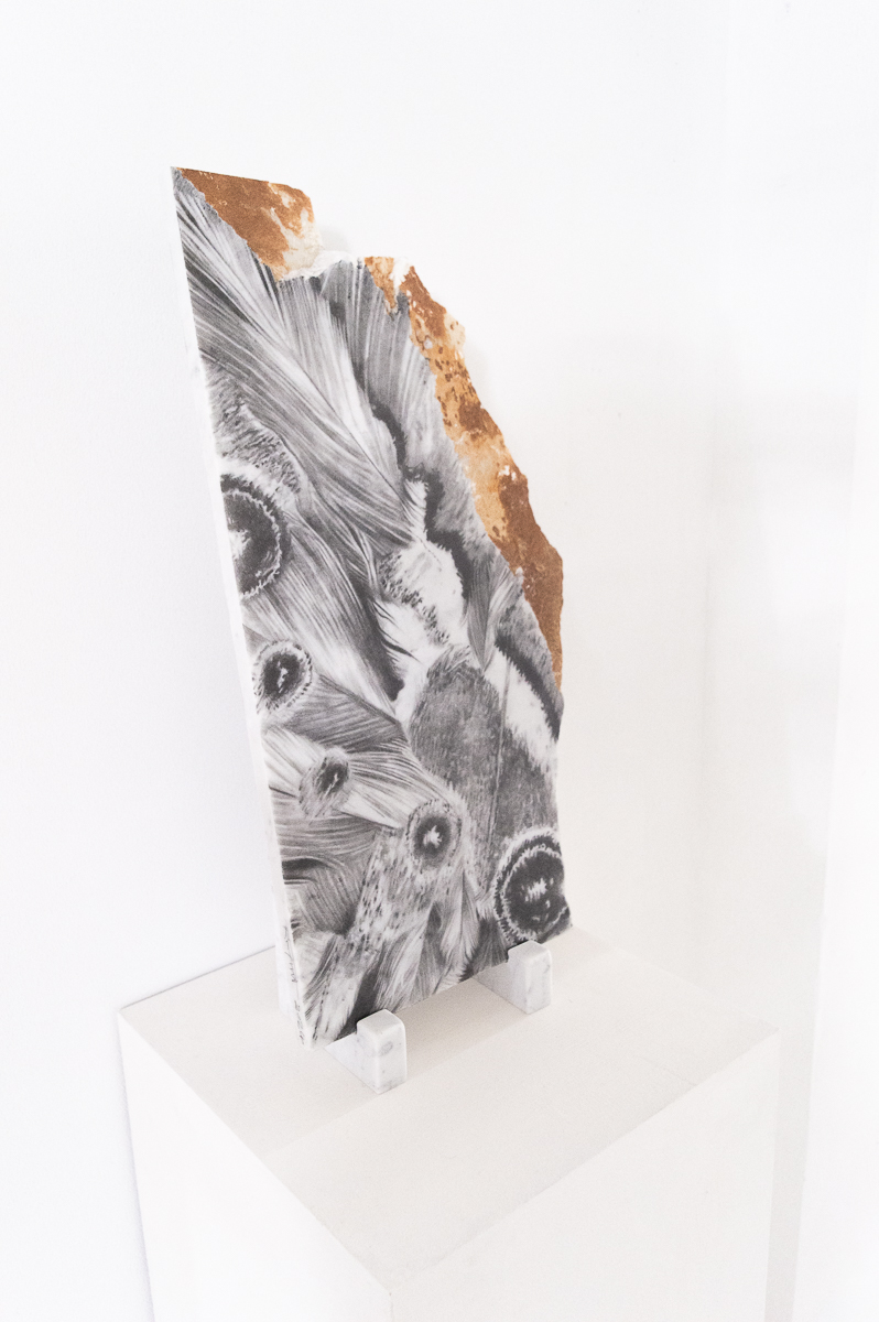 Negli ultimi anni la mia ricerca artistica si è concentrata in particolare modo sul disegno con l’utilizzo di diversi strumenti come la grafite, i pastelli e le matite colorate. Ho iniziato a lavorare prima su fogli di carta di piccole dimensioni, successivamente espandendo il segno su grandi formati fino a sperimentare superfici come le pietre di marmo e travertino. I soggetti, provenienti dal mondo naturale sono ingranditi, trasfigurati nel tentativo di offrire punti di vista inconsueti. L’osservatore è costretto a sfogliare, nell’atlante della propria memoria, immagini che lo aiutino a riconoscere ciò che sta guardando per poterlo comprendere. È un processo poetico, meditativo e di dialogo che cerco di instaurare, attraverso il mio lavoro, con il pubblico. Un’esperienza tra echi e rimandi, inesauribili segreti, che abitano nei fossili di memoria.