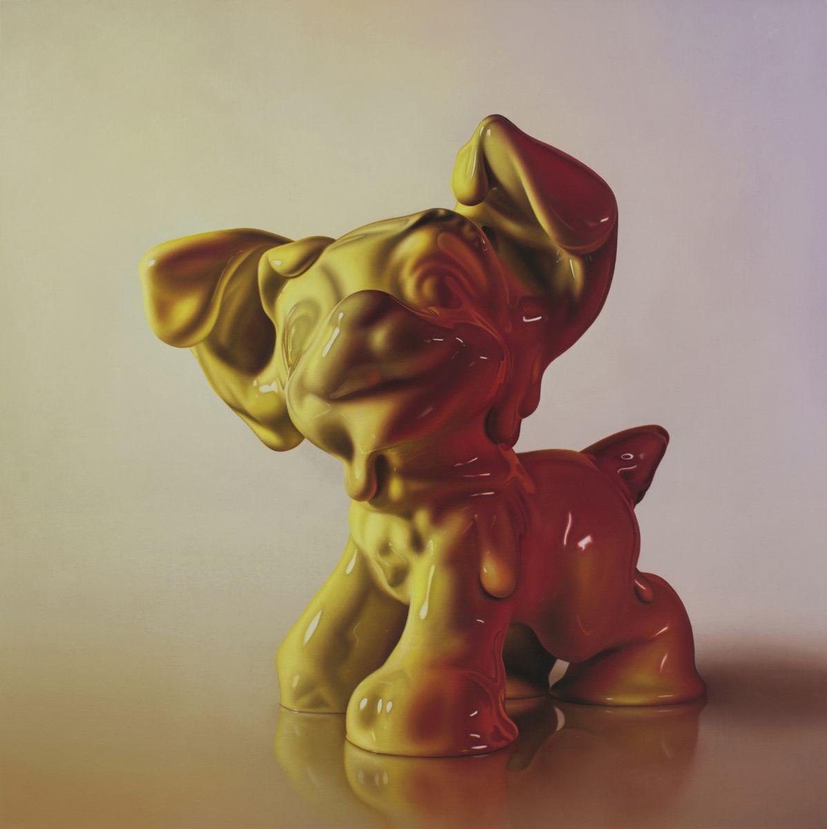 Attualmente i miei quadri prendono spunto dai pupazzi della Ledraplastic, da quelli Disney a quelli della Metro Goldwyn Mayer. Il mio lavoro attuale nasce prima di tutto ricercando i soggetti. La seconda fase è la preparazione della copertura e il colaggio della stessa sul pupazzo: creo un set fotografico con fari e luci colorate e cerco di scattare più fotografie possibili cercando di immortalare ciò che presto si scioglierà disgregandosi. Poi procedo creando il progetto al computer scegliendo le gocce, coperture e forme migliori dai vari scatti. Così creo qualcosa di impossibile nella realtà, ma comunque reale. Quando il progetto mi soddisfa parte la fase più lunga, quella della realizzazione del dipinto sulla tela con i colori ad olio, ciò che fa sembrare il dipinto quasi una scultura.