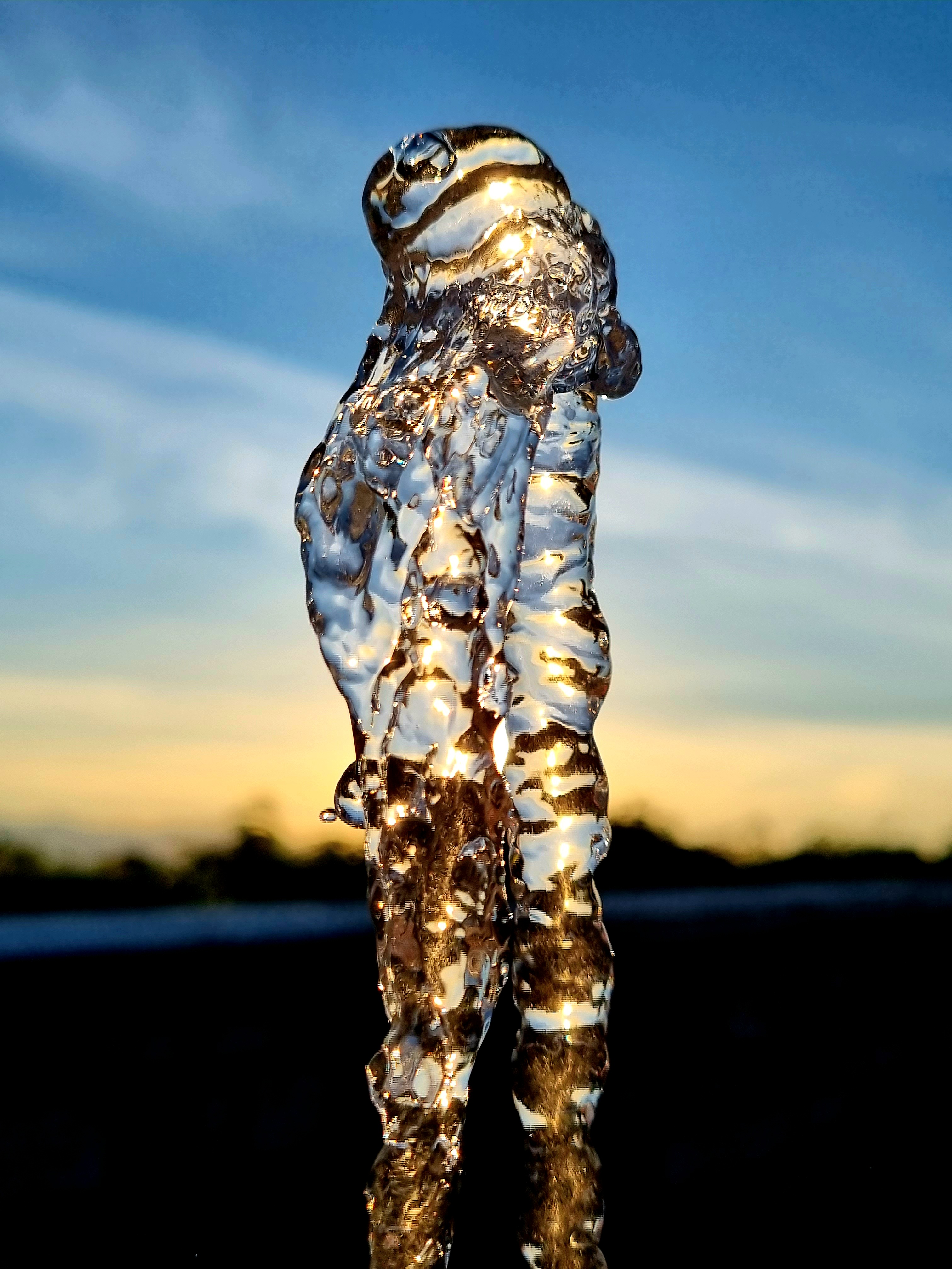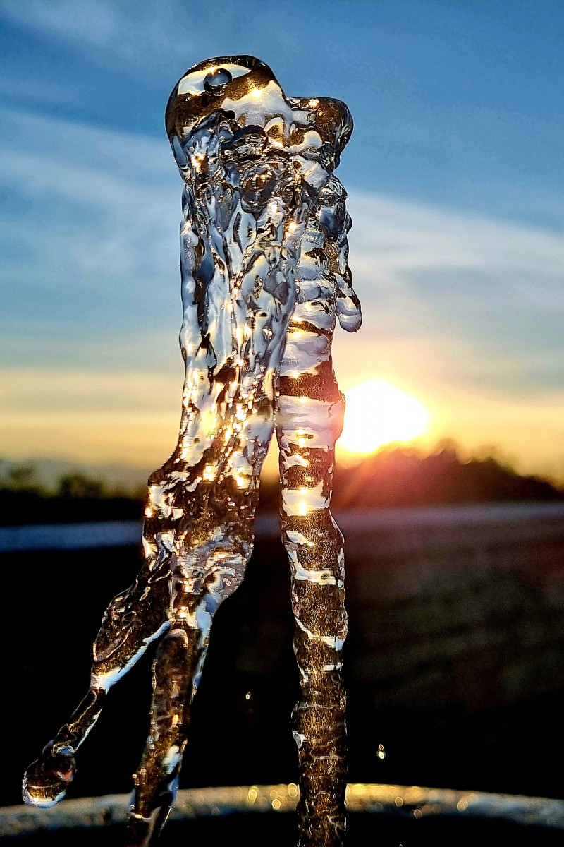 In un giorno assolato del mese di luglio, al calar del sole, mi sono imbattuto insieme alla mia famiglia in una piccola fontana. La prima cosa che ho fatto è bere un bel sorso di acqua fresca, poi la mia immaginazione è andata “oltre” l’apparenza scontata dell’acqua che sgorga da una fontanella ed è nata la serie “La danza dell’acqua”.
