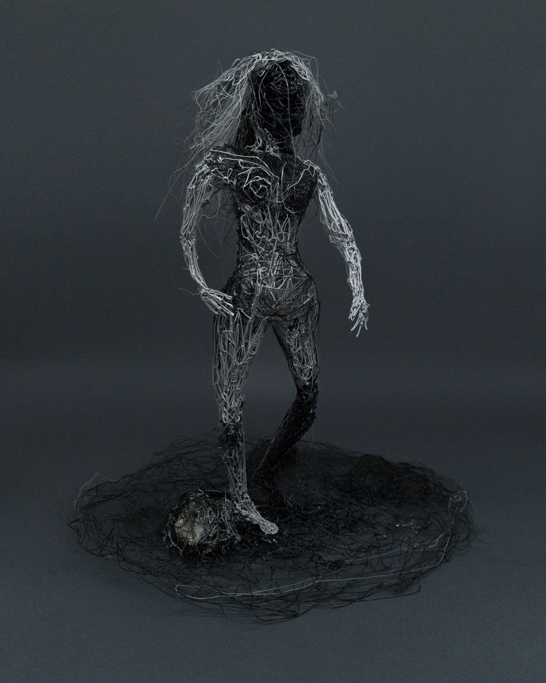 La scultura realizzata con penna 3d rappresenta un corpo femminile che avanza.