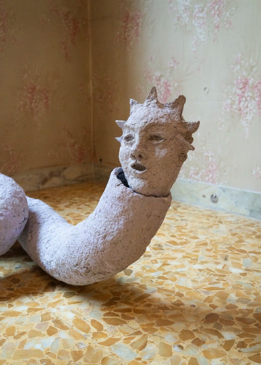 Valeria Carrieri è un’artista e ricercatrice con un percorso multidisciplinare. Ha studiato Letteratura tra Roma, Siena e Losanna e Arti visive alla Haute École des Arts du Rhin di Strasburgo. La sua ricerca si nutre di pittura e letteratura guardando contemporaneamente alle arti cosiddette brut e popolari, alla poesia e al teatro. Nella sua pratica che consiste in testi, disegni, monotipi, ricami, dipinti e sculture, principalmente in cartapesta e ceramica, interroga lo spazio silenzioso tra arte, mito e vita quotidiana, il limite indefinibile tra antropomorfismo e oggettualità. Vive a Roma, sua città natale. Ha partecipato a mostre e residenze tra Italia e Francia, tra cui si segnalano per le residenze: Simposio di Pittura, a cura di Luigi Presicce (2019,2023,2024), Viafarini, Milano (2024), Posidonieto (2024) e per le mostre personali: Dafne Suite / Il Diluvio, Studiolo Bureau, Milano 2025; Portagioie, Casa Vuota, Roma, 2025; Fiorellini, Il Crepaccio Instagram Show, 2025, Roma, 2024, Nei giardini non dorme l’erba, Iuno, Roma. Tra le collettive: DRAWINGSSSSSSS, Studiolo Bureau, 2025, Intorno alla Stella, Nashira Gallery, 2025; Per grazia ricevuta, Museo del Tesoro di San Gennaro, Napoli; Studiolo à Rue du Dragon, Parigi, 2024; Viafarini Open Studio, Milano 2024; Guerriere d’amore nel sogno, con V. Lupi, Tana delle Tigri, Firenze, 2024; ; Li Sibburchi, Lecce, 2024.