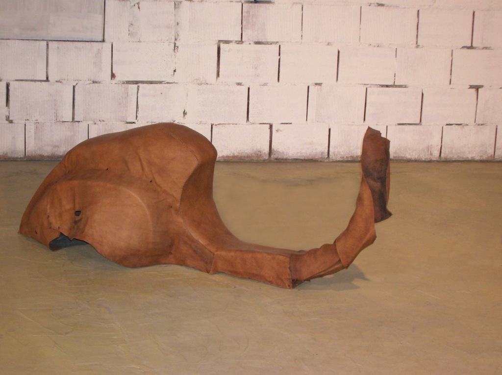 Dal desiderio di ridare forma alle pelli utilizzate, nasce questo lavoro. Grazie all’utilizzo del telaio di una Vespa Piaggio, oggetto simile per forma e per funzione, ritrovo la tridimensione in cerca dell’utopica rianimazione dell’animale.