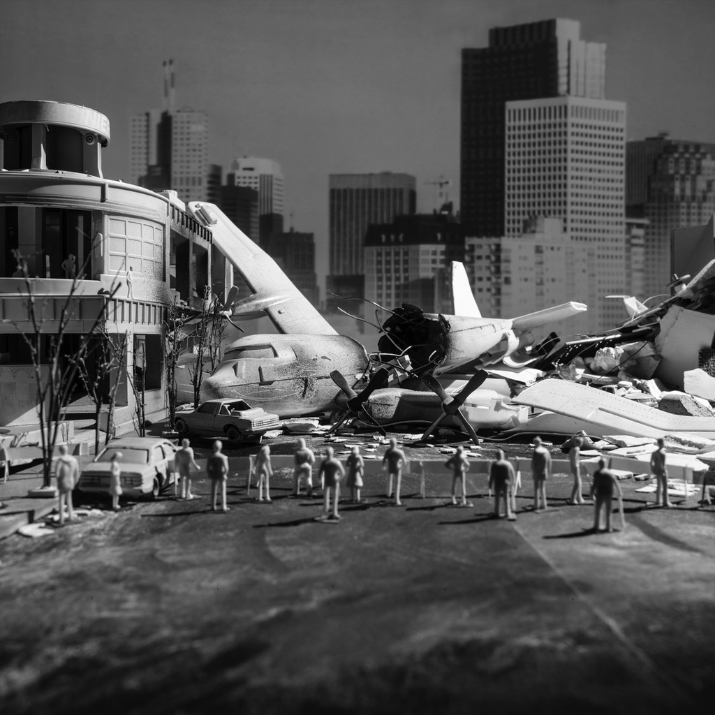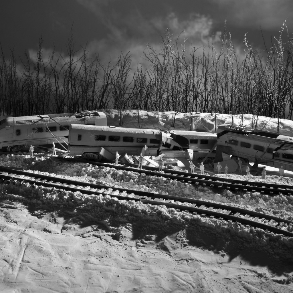Il progetto “Disaster toys” nasce da una riflessione sulla memoria e sulla continuità tra la fotografia e la realtà che essa rappresenta. La fotografia, intesa come supporto di archiviazione, sembra contenere un messaggio che non necessita processi di decodifica per la lettura; ciononostante è possibile che essa configuri un cortocircuito percettivo e che ponga questioni sulla sua stessa natura. Da sempre l’umanità cerca di fissare la memoria su svariati supporti, ma la perdita della stessa non dipende solo dal contenitore. Esistono oggetti provenienti da epoche lontane che contengono una traccia talmente remota da divenire indecifrabile, poiché di essa si è perso il codice di scrittura. Per realizzare queste immagini utilizzo giocattoli abbandonati o recuperati nei mercati dell’usato, ricoperti con uno strato di vernice bianca che rappresenta per me l’impossibilità di recuperarne l’origine. Con essi ri-costruisco il teatro di un incidente che simboleggia a sua volta uno dei più gravi disastri dell’umanità, la perdita della memoria.
