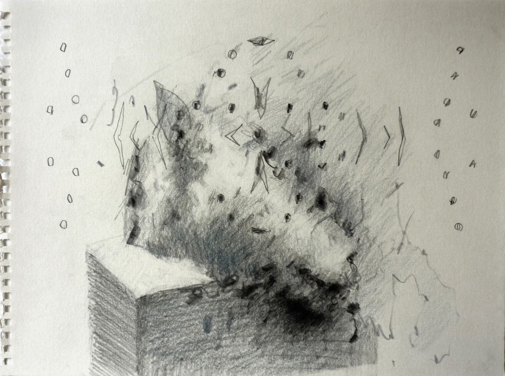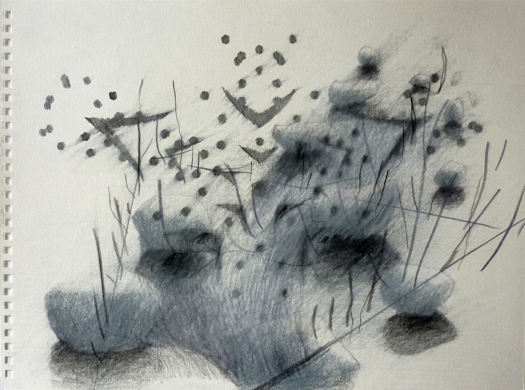 Anadioménon è l’ultimo di una serie di 40 disegni confluiti in parte nell’omonimo libro d’artista realizzato in collaborazione con la pittrice Paola Angelini. Anadiomene è un aggettivo usato nell’antichità greca e romana come epiteto a Venere in quanto nata dalla spuma del mare.In questo ciclo di disegni, la cui genesi è ispirata da alcuni scritti di Alberto Savinio, anadioménon esprime in maniera dinamica il movimento dell’emersione. Una realtà anadioménon sorge multiforme dalle acque risalendo da un fondo oscuro: si tratta di affioramenti che hanno origine dall’impalpabile dimensione psichica, ologrammi di una passata realtà che fu integra, oramai smembrata in più frammenti.«Il mondo è di continuo – come Venere – anadioménon: chè di continuo, su da qualche mar che lo gestiva in un travaglio misterioso, si suscita un novello dio.» (A. Savinio)