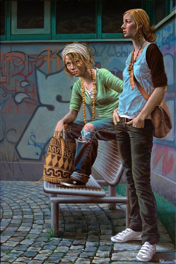 Also, by teaching classical painting and painting techniques was Mariana Scvortova her own artistic positioning clearer. Through admiration of the material world and almost fetishistic attention to details in her images , the artist builds a set of associations . Playful she pulls the viewer’s attention to the everyday, almost not noticed things , and thereby brings a wide range of emotions. They are nostalgic , melancholic, sentimental, sad , even critical and rebellious and are in harmony with the modern life. Add her images to the opposite pole of a lost and uncertain modern man is to discover.