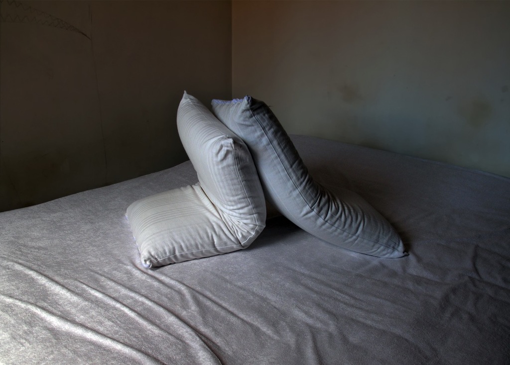 L’opera nasce durante un ciclo di conferenze teorico-pratiche sul rapporto tra mente e corpo e, nello specifico, sul metodo Feldenkrais e sull’Analisi Bioenergetica, un tipo di psicoterapia a mediazione corporea messa a punto negli anni ’50 dal medico e psicoterapeuta americano Alexander Lowen.Secondo questa disciplina il meccanismo con cui controlliamo i sentimenti ha sempre un corrispettivo simmetrico nella struttura della nostra muscolatura. Lo schema rigido di controllo, esercitato dalla mente, ha ripercussioni visibili nel corpo teso in posizione di difesa, appeso, sradicato, inibito dall’abitudine al controllo.I cuscini rappresentano l’attività bioenergetica (intesa come scambio di forza vitale) di due corpi che si lasciano cadere uno sull’altro, ma nel farlo si sostengono. Una seconda attività, l’impulso fotografico, muove e raccoglie allo stesso tempo l’energia di quella posa, in una sorta di ”transfert visivo” tra analista e paziente. Sostenersi, sentire, lasciarsi andare insieme all’altro, non sono altro che le nostre re-azioni alla paura di cadere e al bisogno di appartenere. Senza difese.
