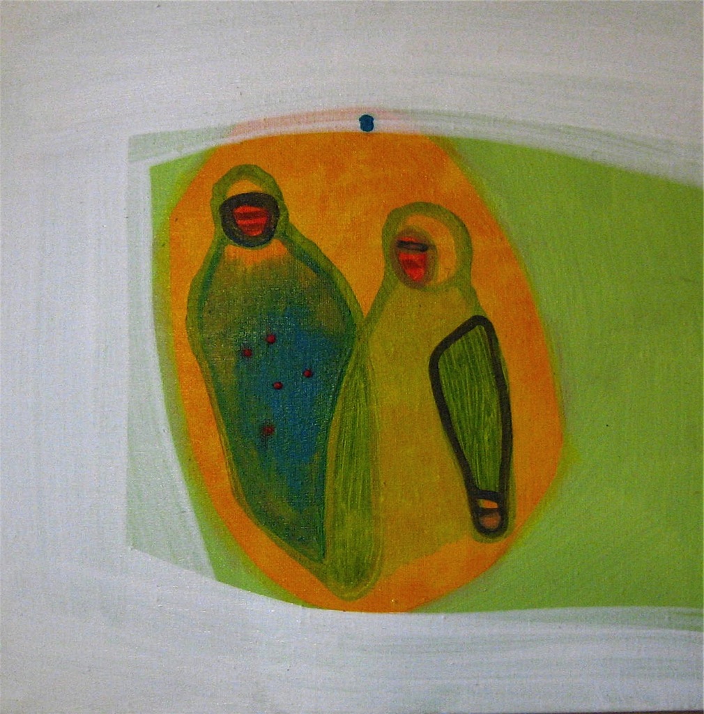 L’opera presentata è parte di una serie realizzata di recente ( esterno 14 ) e raffigura scene di vita quotidiana attraverso un uso particolare della pittura e del segno . Il lavoro si concentra sulle relazioni umane e sull’incomunicabilità dei soggetti , i personaggi spesso sono ancorati a degli oggetti . Ognuno è chiuso nel suo (micromondo).