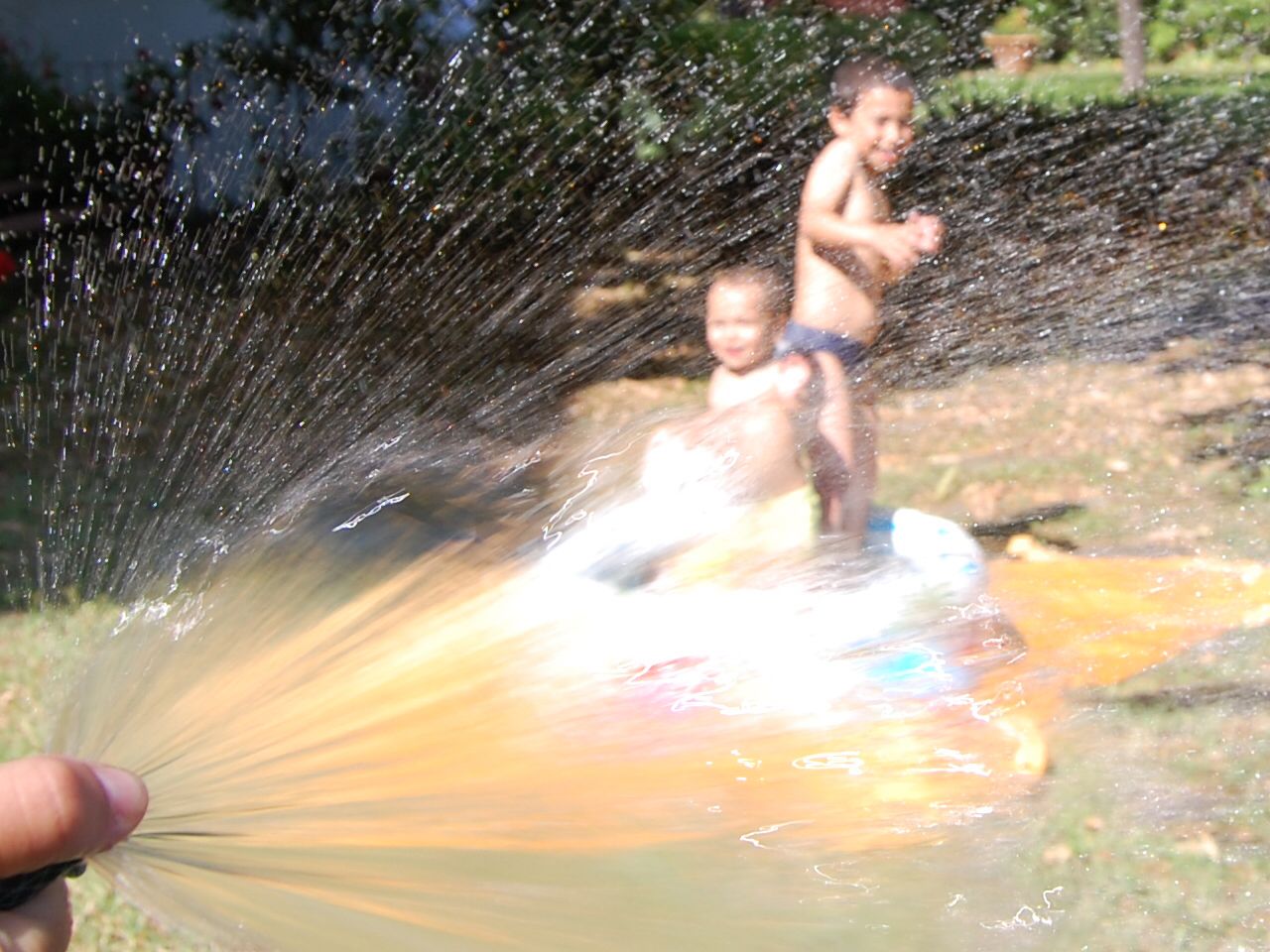 Qui l’obiettivo che si è voluto raggiungere, spruzzando l’acqua con una mano e fotografando con l’altra, è quello di fare una foto che appaia come un quadro che emerge nei suoi colori, magicamente, dipinto con l’acqua. L’effetto coglie la pura spontaneità, la gioia e il gioco dei bambini che sembrano prendere forma uscendo dal dito che preme sul tubo. L’immagine finale è quello di un quadro colorato con l’acqua e non quella di una fotografia.