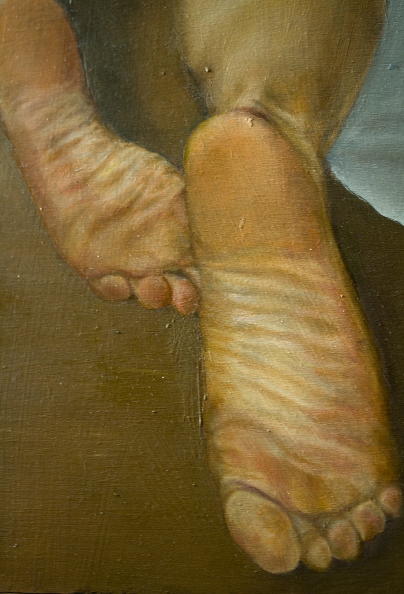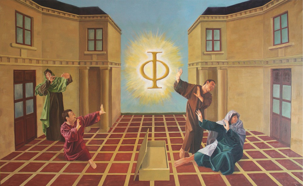 El banquete es una visión personal de la sociedad actual, en que se ve a un banquero atiborrándose mientras es masturbado por una política , un periodista cobrando de la política por hacerle la pelota, la iglesia confreternizando y haciéndose el simpático con tal de seguir comiendo del estado, un juez que no quiere ver nada mientras le dejen comer y por último, el pueblo representado por dos personas desnudas y encadenadas que luchan por los restos del banquete. Cada uno de los personajes representa un poder de la sociedad (pueblo, prensa, polÃtica, económico, religioso y judicial) y la obra pretende mostrar cómo la gente vive sometida a los distintos poderes mientras los representantes de los mismos viven a lo grande y sin preocupaciones./Mi carrera artística comienza en el 2000 cuando ingreso en la facultad de Bellas Artes de Valencia, desde entonces he ganada diversos premios de pintura y fotografía y he expuesto en ciudades como Roma, Barcelona, Valencia, Torino, Arcevia, Castellón...En cuanto a mi estilo, comencé realizando una serie de obras abstractas basadas en la tipografía, en las que creé un alfabeto propio basado en los pictogramas y los alfabetos conceputales. Posteriormente, los temas de mis obras me llevaron a trabajar la figuración, para tratar temas como la religión, la ciencia, la política... creando cuadros llenos de matices y de significados complejos que hacen reflexionar al espectador y le sorprenden cuanto más los observa y más detalles descubre.