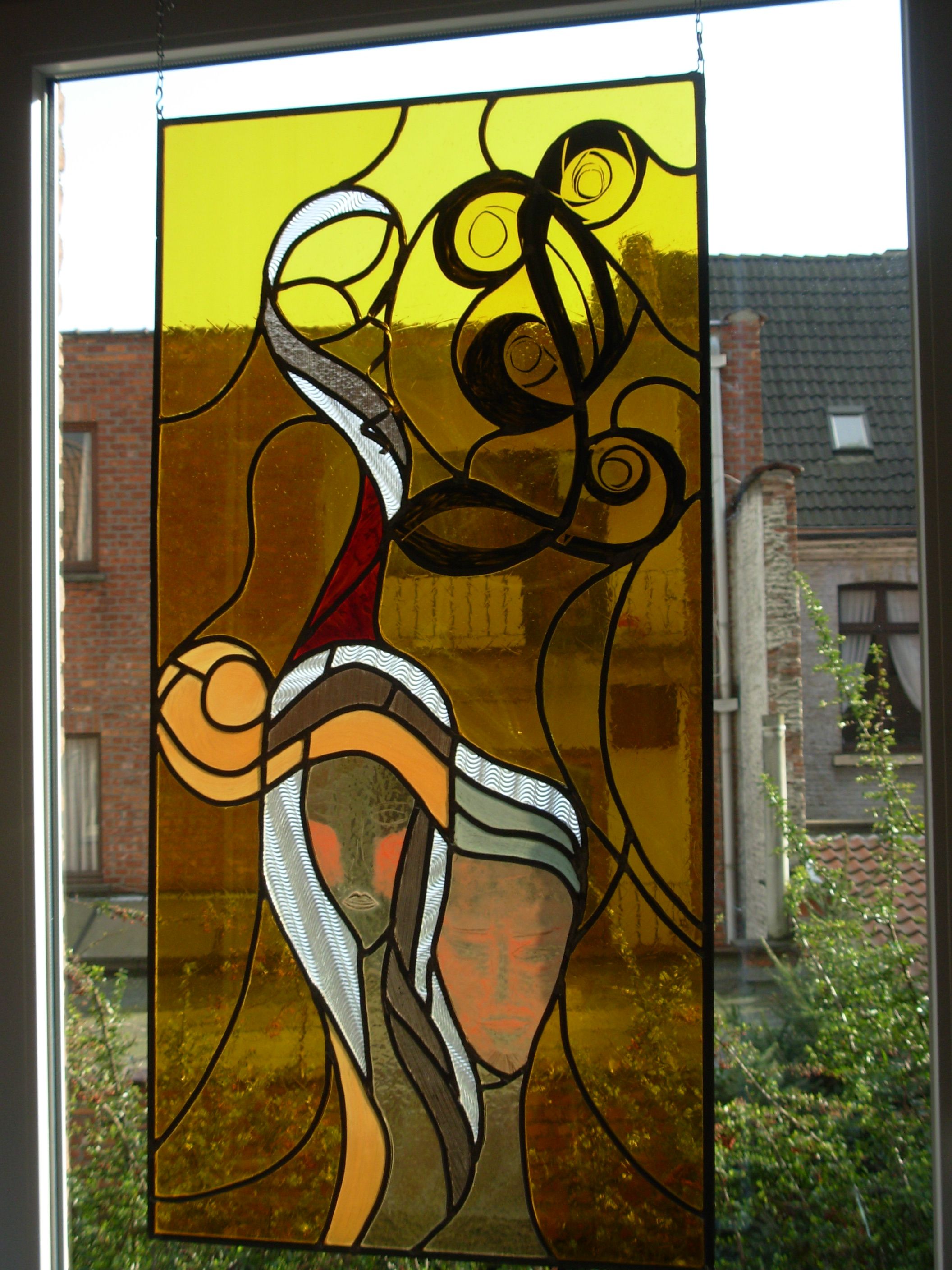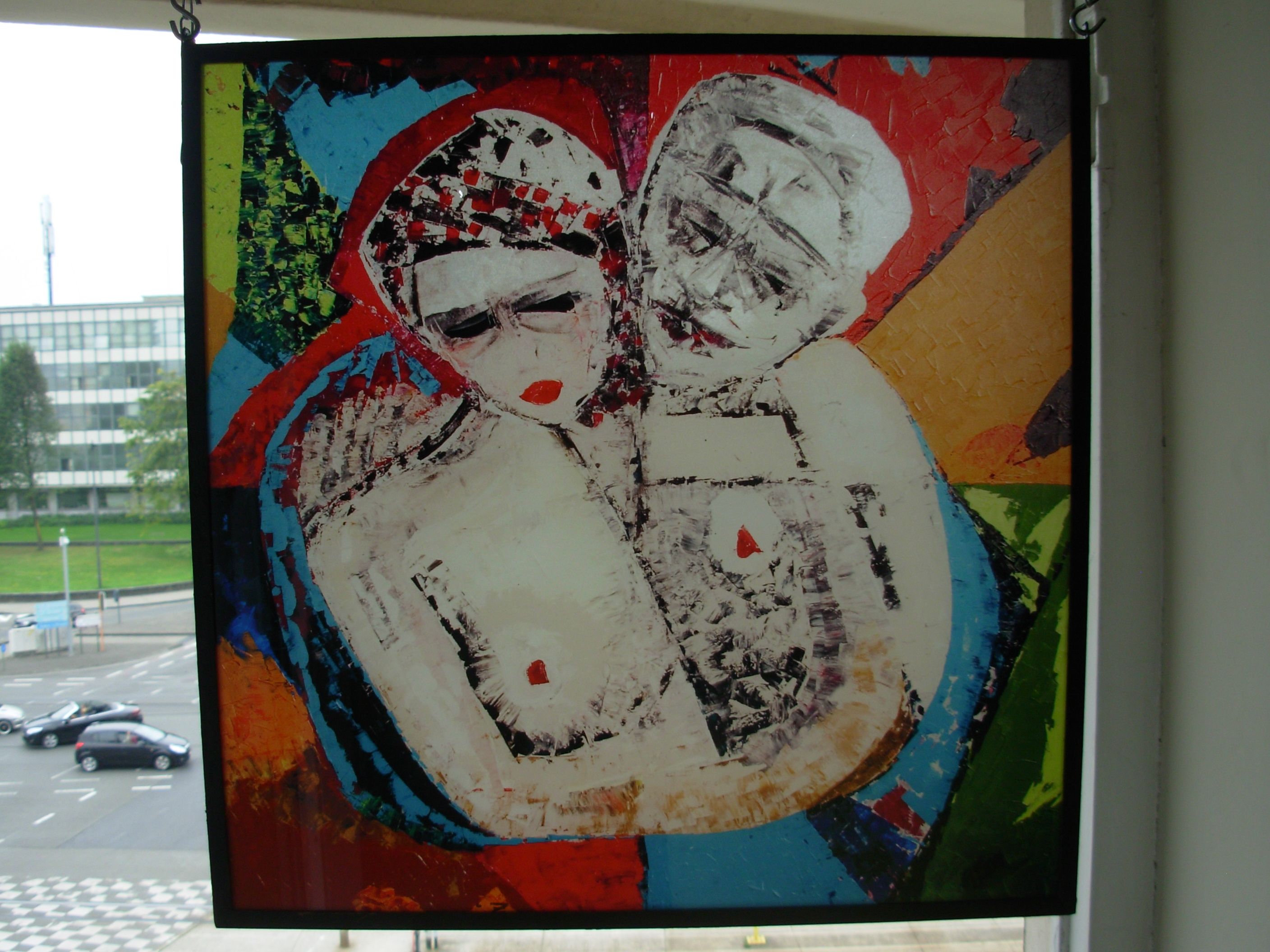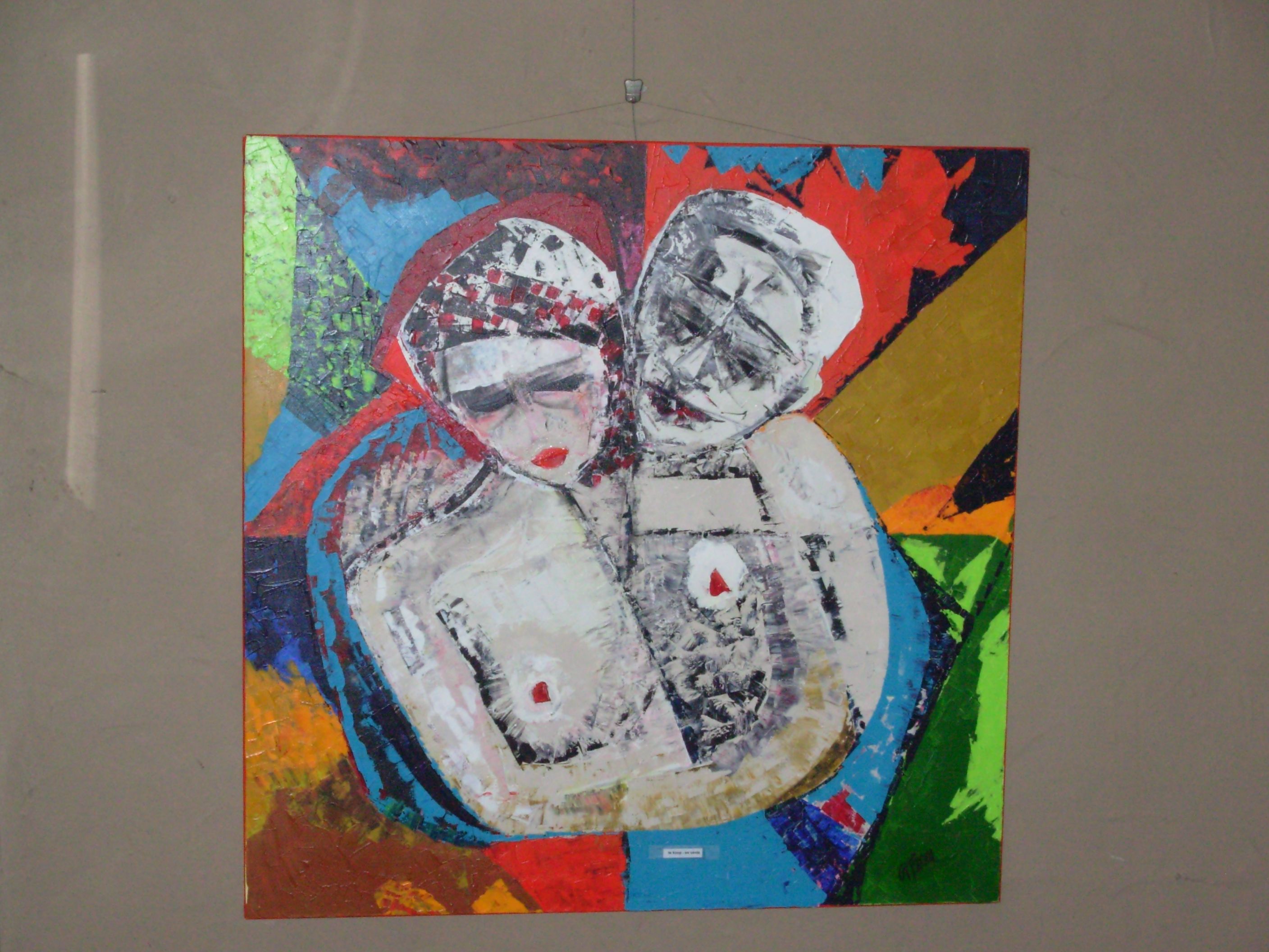 La création : ”couple” peinte en 2011 et transposée en verre en 2014 me plaît beaucoup et me ressemble : couleurs - énergie - impétuosité - émotion - C’est une création autobiographique spontanée sur le thème de l’impossible intimité existentielle dans le couple - Je l’ai exposée à deux reprises et le public a ressenti beaucoup d’émotion et a bien décrypté le sens - ce qui me semble en soi une réussite.