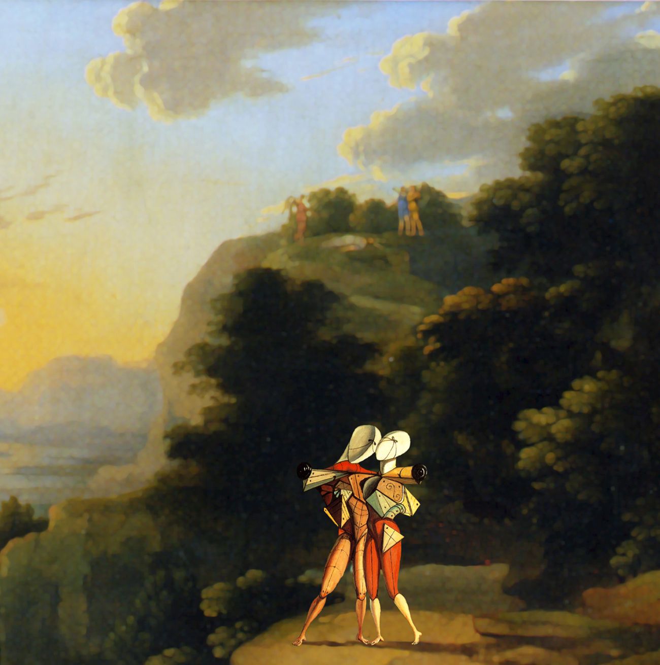Le sue tematiche sono rivolte alla realizzazione di immagini ambigue, dove la percezione visiva può essere spiazzata nel tempo attingendo a differenti periodi della storia dell’arte in una sorta di contaminazione libera e conflittuale che scatena inaspettate immagini poetiche. Così il dissesto ambientale dell’automobile diventa inaccettabile se si profana la pace di una campagna romana del seicento o la serenità di una veduta di Capri di Hackert. In alcune sue opere c’è anche il recupero di immagini provenienti da miniature del Trecento inserite in contesti pittorici del Novecento. Inoltre, influenzato dagli studi sulla fisica quantistica, dove la posizione di una particella è del tutto incerta, in alcune sue immagini un pezzo di Venezia si materializza in Arizona mentre la lanterna di Genova si solidifica tra le rocce del Colorado.