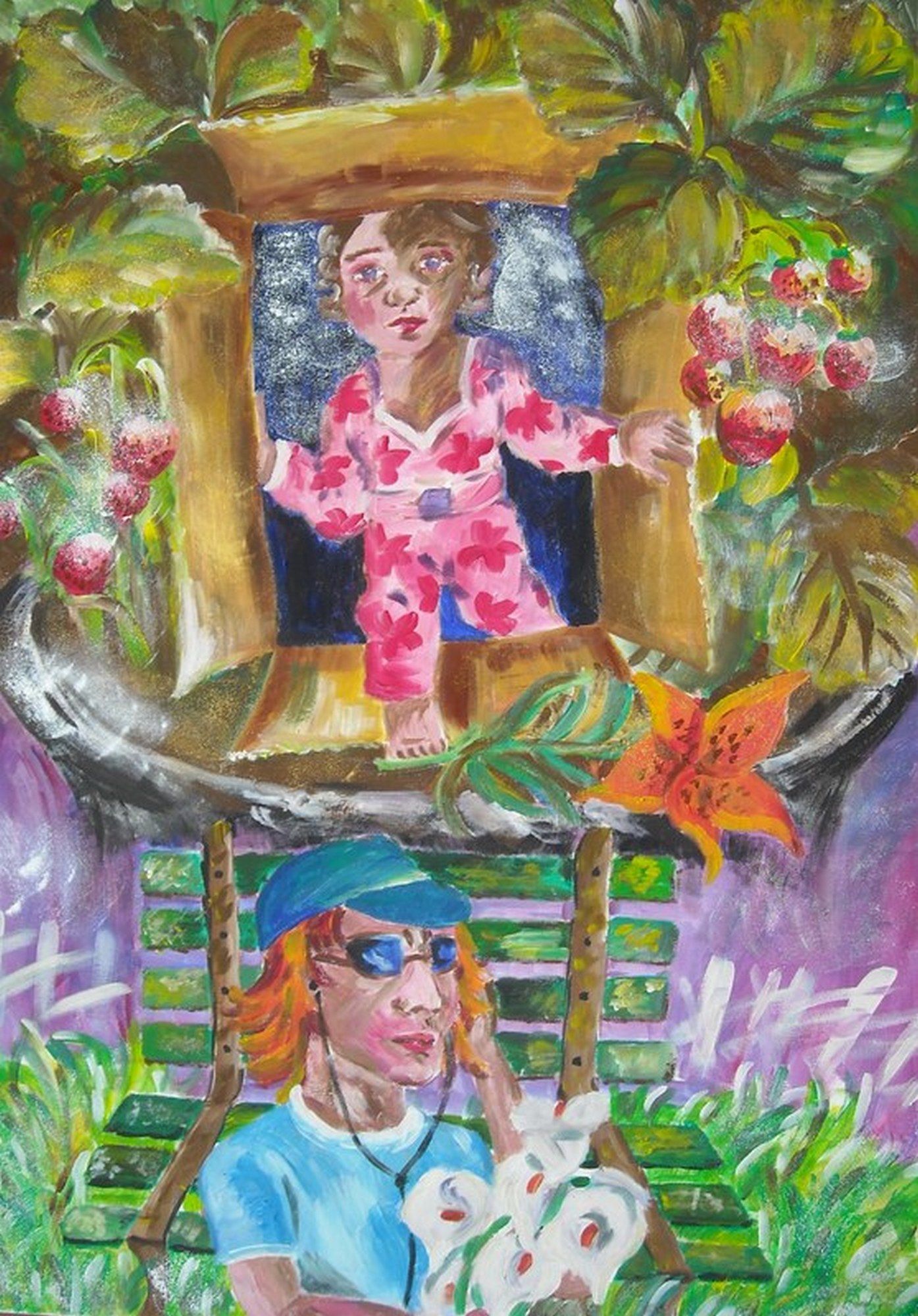 Una bimba in un vaso di fragole, scorge un ragazzo che ascolta musica aspettando....