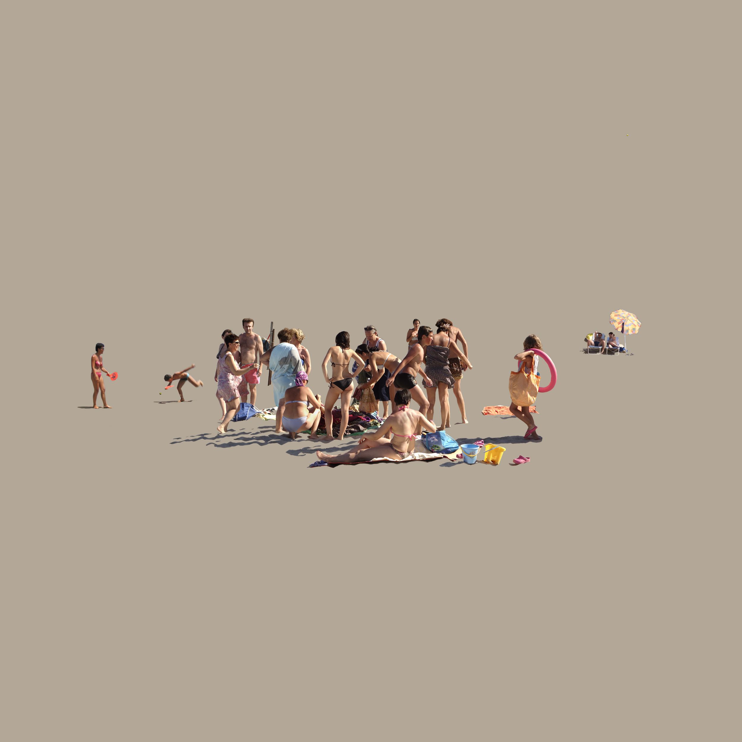 Fotografo professionista dal 1985, mi occupo di produzione di immagini per la pubblicita’. Solo da qualche tempo mi sono imposto di sviluppare le idee riposte e custodite in questi anni e che non ho avuto tempo di concretizzare per l’ impegno a tempo pieno che l’ attivita’ richiede.Qui presento delle immagini frutto di osservazioni di spiagge italiane, attraverso le quali cerco di fissare atteggiamenti, relazioni e abitudini del nostro tempo che qui si manifestano in modo trasversale a tutti i ceti sociali. Un lavoro di sottrazione , eseguito in postproduzione, per isolare e rivelare situazioni che nella confusione si mimetizzano .La spiaggia, luogo ludico, e’ una zona franca,un palcoscenico della nostra epoca dove tutti giocano con le stesse chances, difficile attribuire gerarchie e status sociali che nella quotidianita’ riconosciamo nello sfoggio e nel possesso di oggetti che li simboleggiano.Unici riconoscibili i venditori ambulanti, trattati con tollerante garbo, gente che ha storie da raccontare ma che nessuno vuole ascoltare.Il risultato di questo lavoro e’ una serie di immagini/icone in cui mi riconosco e che mi sembra abbiano il sapore dolceamaro della commedia.