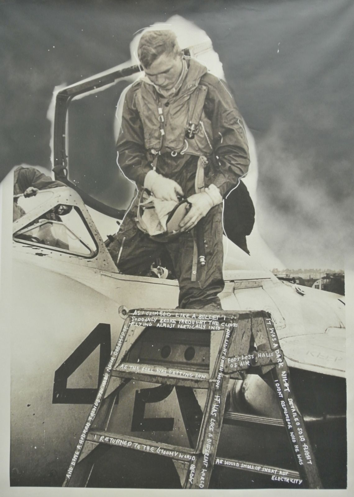 Le citazioni sulla tela dell’opera sono di una lettera che mi ha scritto , cose che ricordo di lui e ” a hundred things you never dreamed of ” tratte da una poesia di Pilot Officer John Gillespie Magee Jnr 1922-1941