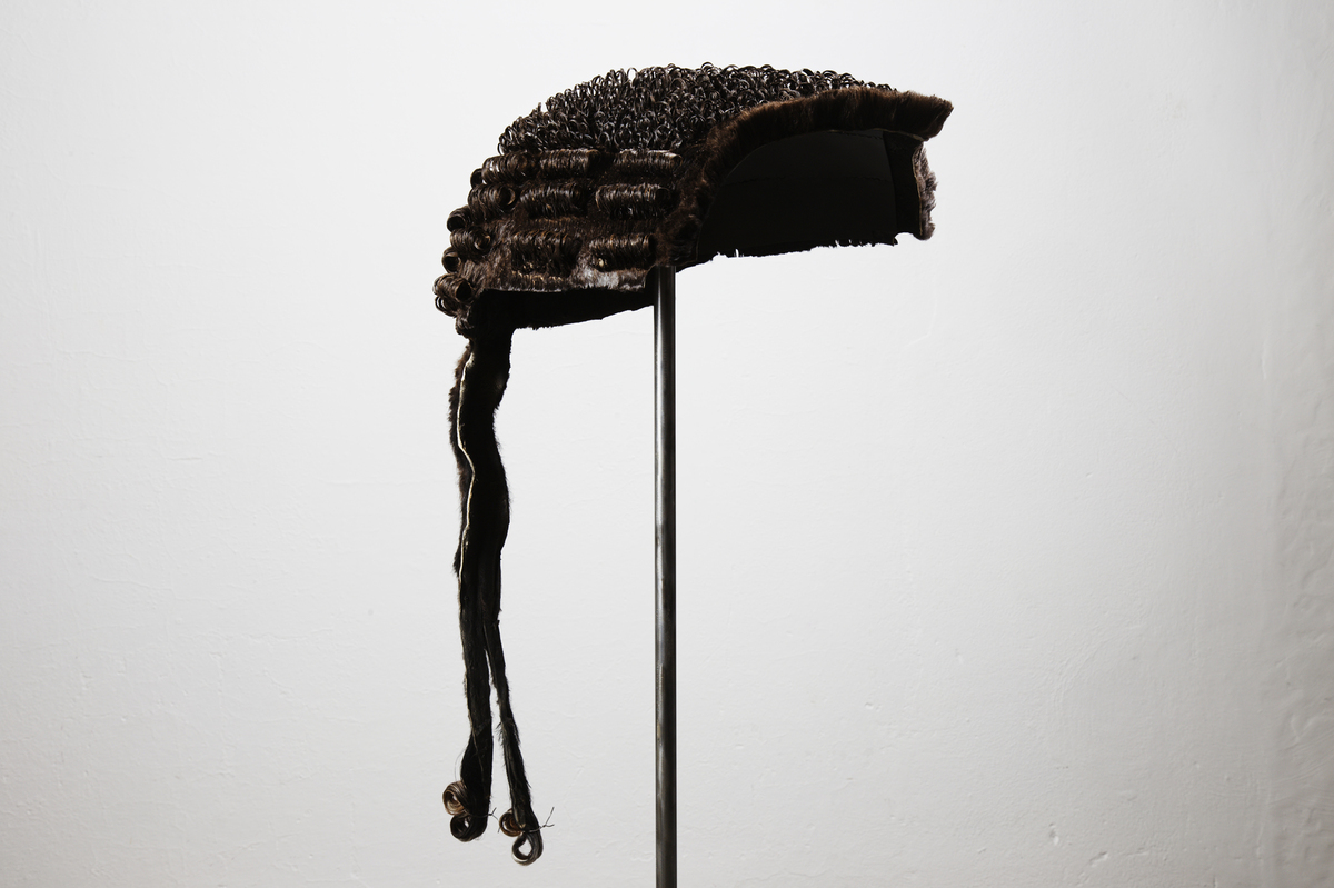 Court Judge wig, letteralmente tradotto in lingua italiana sarebbe, parrucca del giudice della corte di giustizia britannica, oggetto universalmente riconoscibile grazie alla cultura cinematografica. Oggetto che simboleggia e rammenta il rispetto delle leggi, l’imparzialità e la giustizia. Il colore del pelo molto scuro le dona però un aspetto molto cupo e inquietante, chiaro riferimento a svariati casi di malagiustizia del nostro paese.