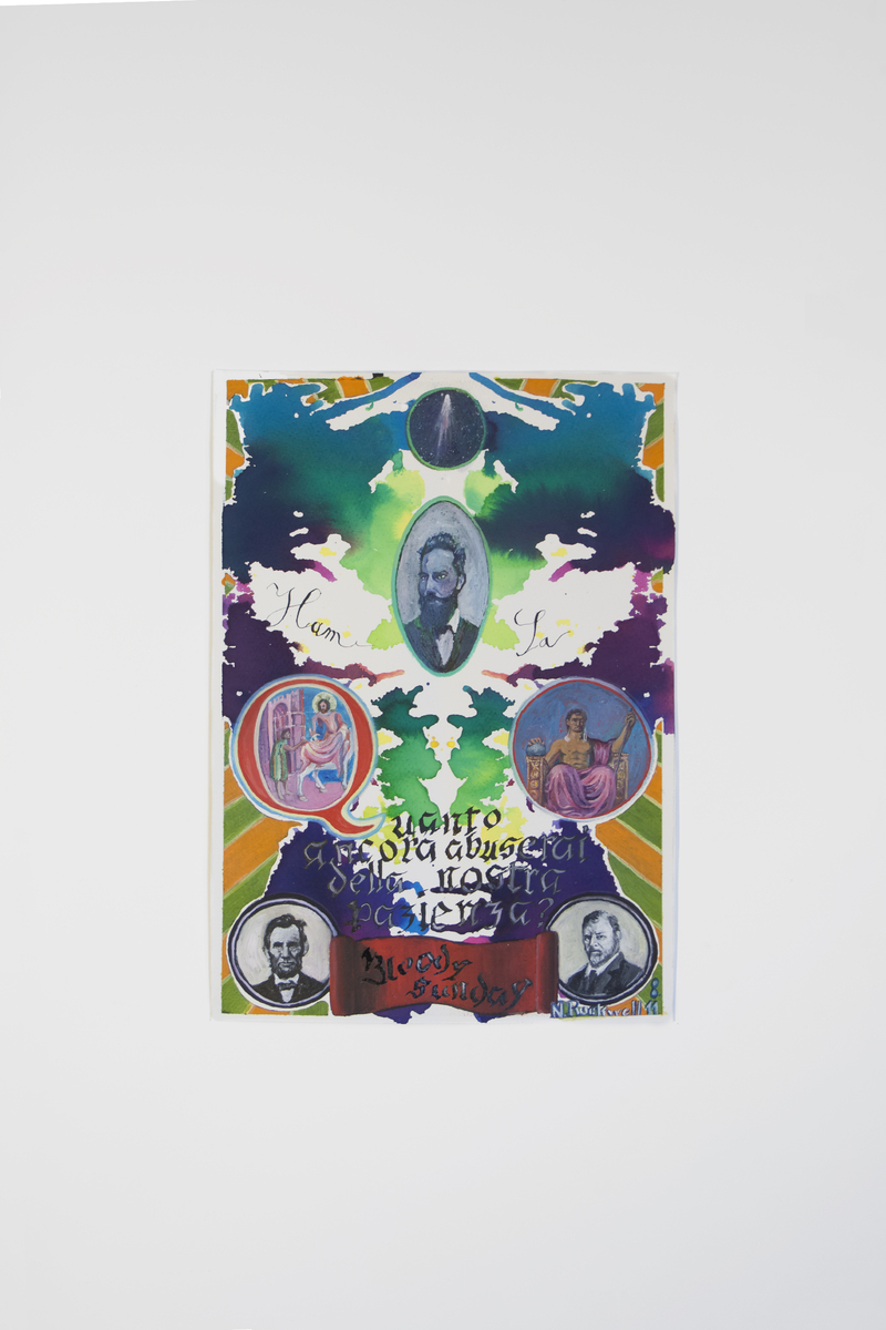Descrizione opera: L’opera rappresenta gli avvenimenti accaduti nel giorno 8 novembre, o fatti e persone ad esso collegati. Gli eventi, avvenuti nel corso della storia, sono stati scelti secondo un sentire soggettivo e predisposti in un ordine temporale lineare caotico con una costruzione formale incoscia e consapevole ad un tempo. Eventi di diversa o opposta natura convivono tra loro cercando tra le maglie della manifestazione quel qualcosa che sfugge alla visione quotidiana nel sonno comune.