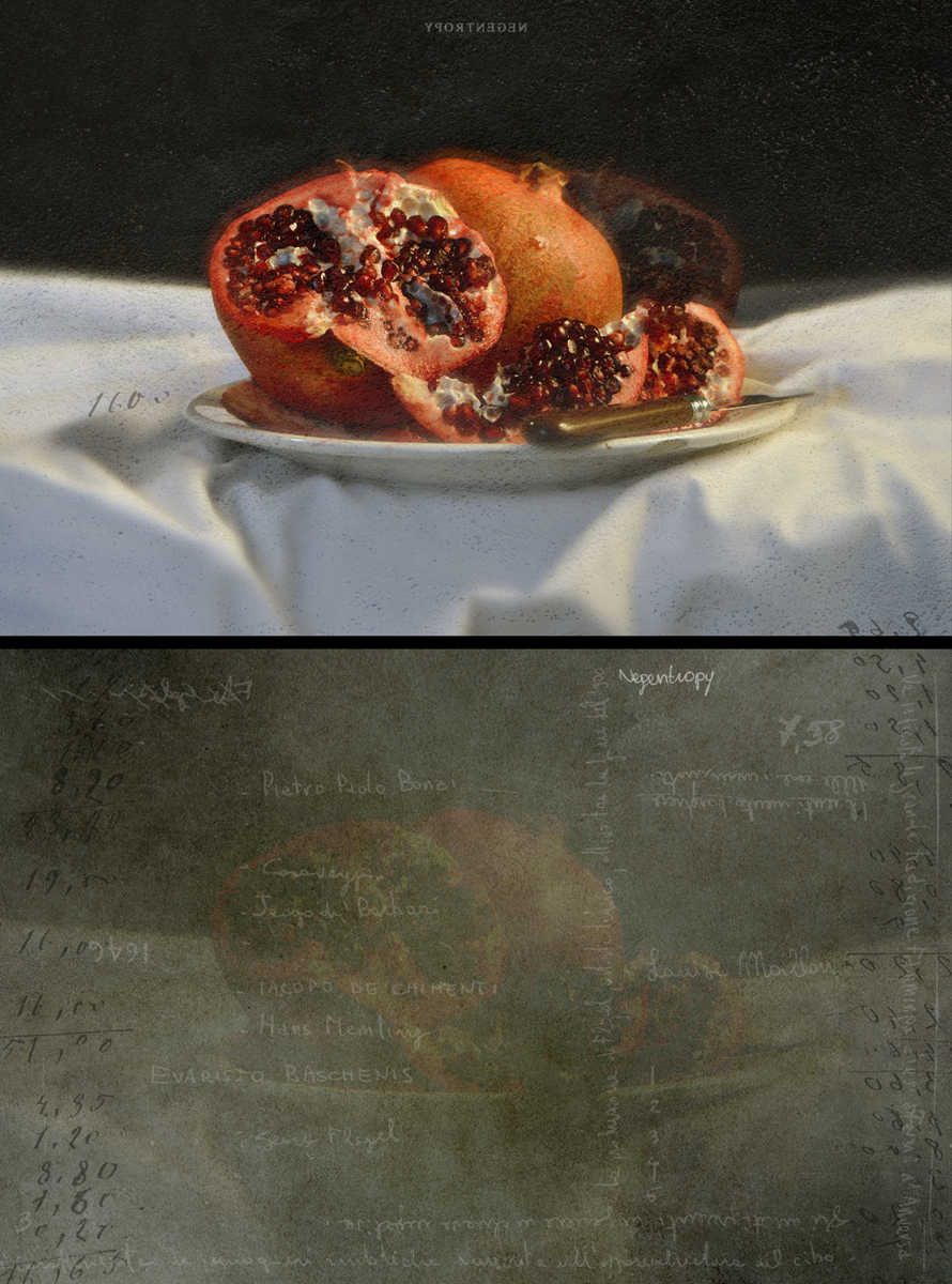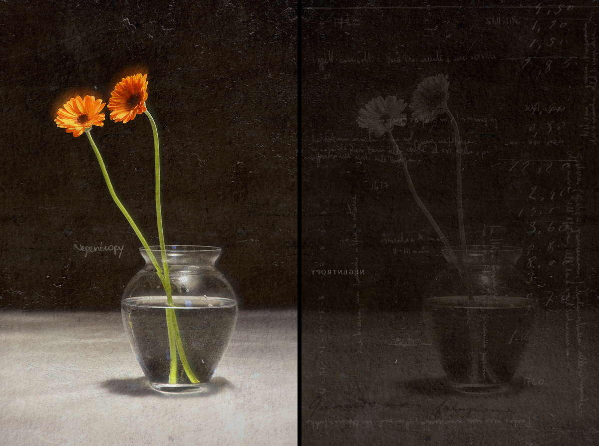 L’immagine, così, anche se ricalcante i vecchi schemi noti, più che un dato certo è il risultato di una drammatica “tensione a...” , ugualmente individuabile nella sua salvifica e dubbia fase di ordinamento (Negentropy), sia nel suo inesorabile disfarsi, che ne rivela subdolamente l’inefficacia informativa (Entropy).