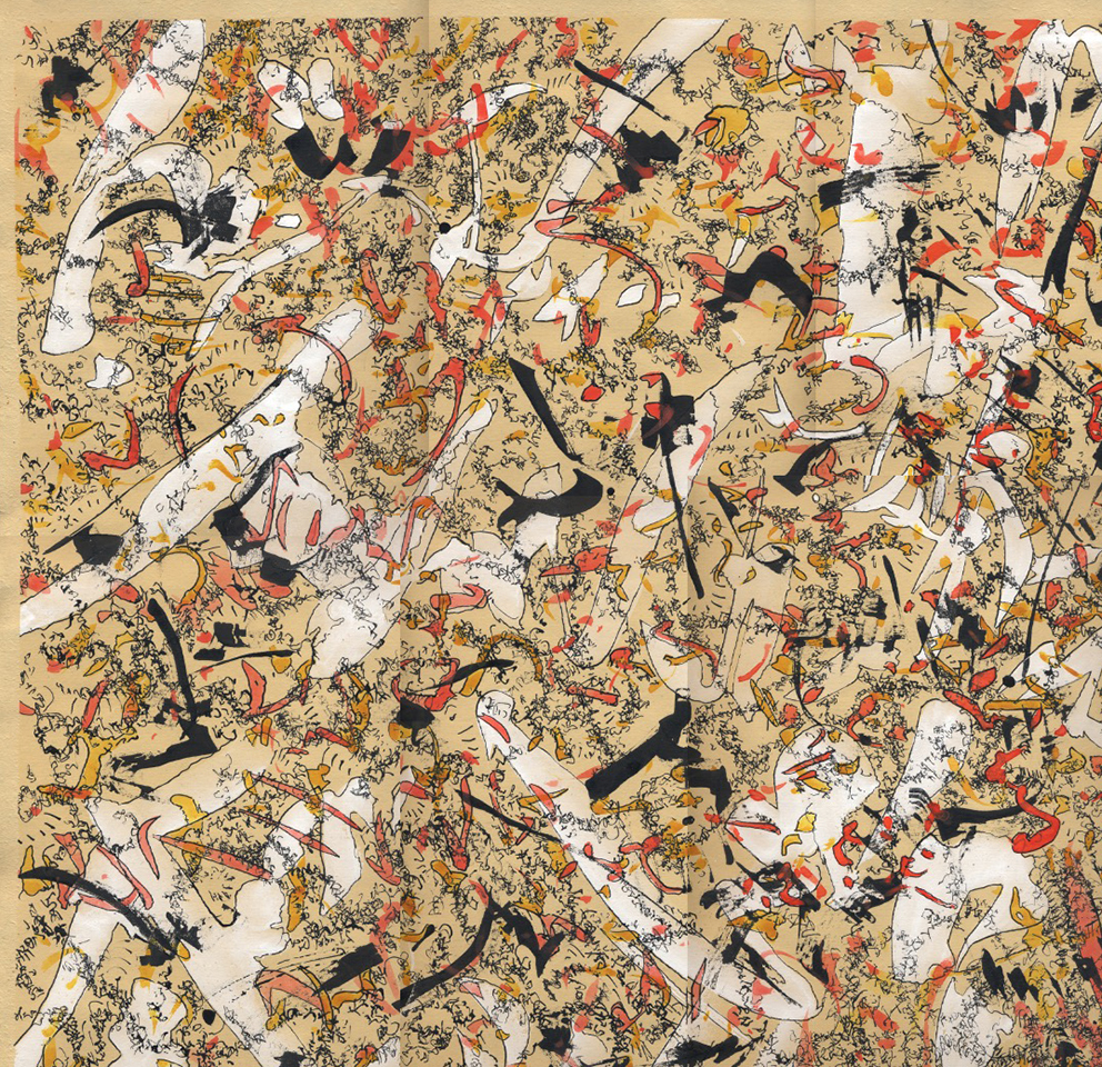 Da diversi anni mi appassiona la ricerca del segno libero, impiegato nella pittura attraverso pigmenti naturali e il disegno, mezzo per sentire quello che mi emoziona, il segno libero di acqua e pigmento trova un suo diritto di essere attraverso un ”collante” che lo sostiene, che lo definisce: il disegno scritto, a volte confine inviolabile di irrequietezza, a volte con un percorso parallelo dove nulla è chiuso a definire frammentarietà. La superficie appare come un territorio infinito e il mio intento è di creare mappe, portolani che rievocano mostri marini e guerrieri pietrificati. Uso china data con il pennino per vari motivi: sono gli strumenti e i materiali che ho usato quando il mestiere del grafico era ancora molto artigianale, inoltre rievocano la passione per i grandi autori del fumetto a me cari, come Alex Raymond e Hal Foster. Ma nel segno a china c’è anche l’idea del ‘riporto’, tecnica fondamentale dell’incisione calcografica che evidenzia l’ineluttabilità del segno, che non è altro che quello che è, il riporto – cioè - di quello che ho in testa. Anche il supporto che uso, la carta, è un materiale importante per me perché è vivo, duttile, tenace, fragile, la carta da spolvero in particolare con la sua consistenza porosa e il suo colore polveroso è la superficie perfetta per costruire i miei scenari. Così nascono “Confini in-definiti”, una serie di lavori che rappresentano continenti immaginari, leggendarie battaglie e stratificazioni urbane.