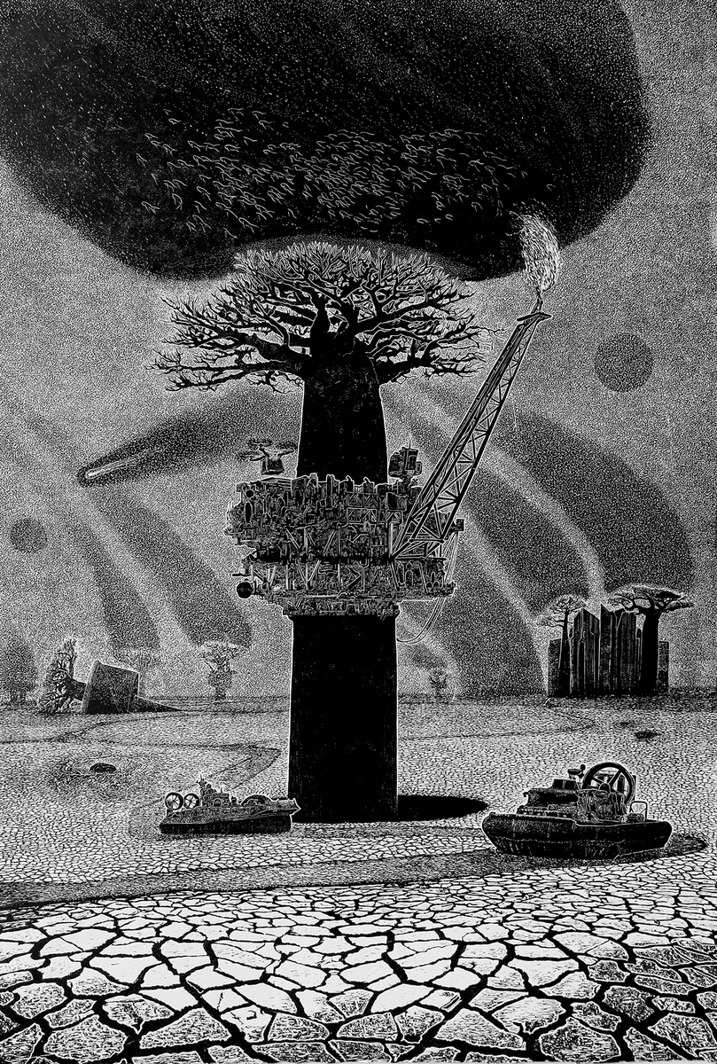 I started this project with different topics and questions awaiting answers. When I started this project, I felt like I was about to start writing a movie script or a short story. I worked directly onto the lino block, collaging images and ideas to tell a story and make a statement.