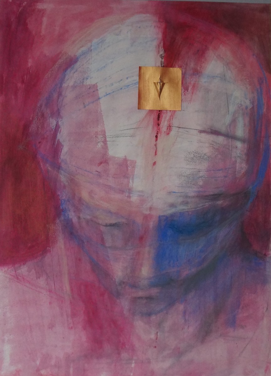 A volte quei personaggi sembrano legati, come se si volessero liberare. Infatti sono ”legati” : o con loro abitudini, peccati, oppure con delle leggi e persecuzioni.. La speranza ce l’hanno però sulle labbra - è il simbolo - quadratino d’oro con la croce.