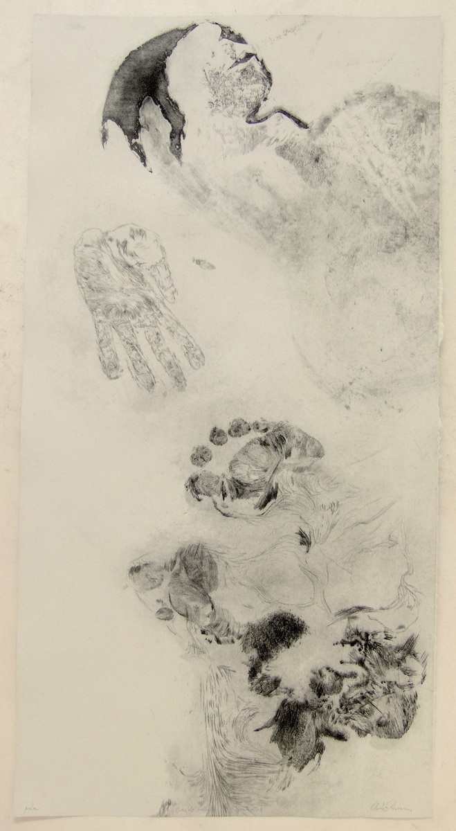 La raccolta di Stampe d’Arte ORME DEL NASCOSTO è stata selezionata per l’edizione 2017 del Premio per giovani incisori Bagnacavallo ed è stata esposta, insieme alla raccolta TRATTI DI TRACCE, al Centro per l’Arte Contemporanea Luigi Pecci di Prato Questa raccolta deriva dalla performance ANATOMIA DEL RESPIRO. In questa azione coreografica la performer taglia la propria forma e postura, disseziona il movimento come in uno studio poetico del proprio organismo e lo fa su di una Skenè di zinco. Su questa grande lastra di metallo il corpo in azione lascia delle impronte e queste, successivamente, servono come guida all’incisione dei tratti di quelle orme. La lastra così segnata diventa la matrice per creare la raccolta di stampe ORME DEL NASCOSTO. Si tratta di uno studio sul Nascosto che abbraccia il percorso coreografico e quello dell’Incisione e della Stampa d’Arte avviato alla Scuola Internazionale di Specializzazione per la Grafica d’Arte Il Bisonte di Firenze. Due linguaggi apparentemente distanti ma vicinissimi per il rigore tecnico che richiedono. Forse nel tratto del gesto si nasconde il Nascosto, nell’impermanenza del linguaggio, sia che si parli attraverso un linguaggio immanente come la danza, che con un linguaggio come l’incisione, che sembra avere caratteristiche di maggiore permanenza. Così vale la pena esplorare il segno. La stampa imprime sulla carta un’assenza, un paesaggio di impronte. Lascia segnata la vulnerabilità della percezione, il paesaggio che la distanza tra l’evento e il suo incidersi come memoria, come immagine, ci obbliga a percorrere e ripercorrere. Quelle Orme, fatte di sudore, sebo e pressione, mentre si posavano sulla Skene di zinco, erano nascoste allo spettatore e sono diventate visibili durante l’esposizione sotto forma di tratti di tracce corporree. Questi tratteggi nascondono l’intensità del gesto, la velocità e il respiro dell’azione. Cosi la composizione coreografica basata sull’istante si pone all’origine della creazione di un manufatto. La composizione delle tracce su zinco resta nel tempo, a differenza del gesto che le ha generate, e quelle orme così incise sono i resti di un attimo di passaggio.