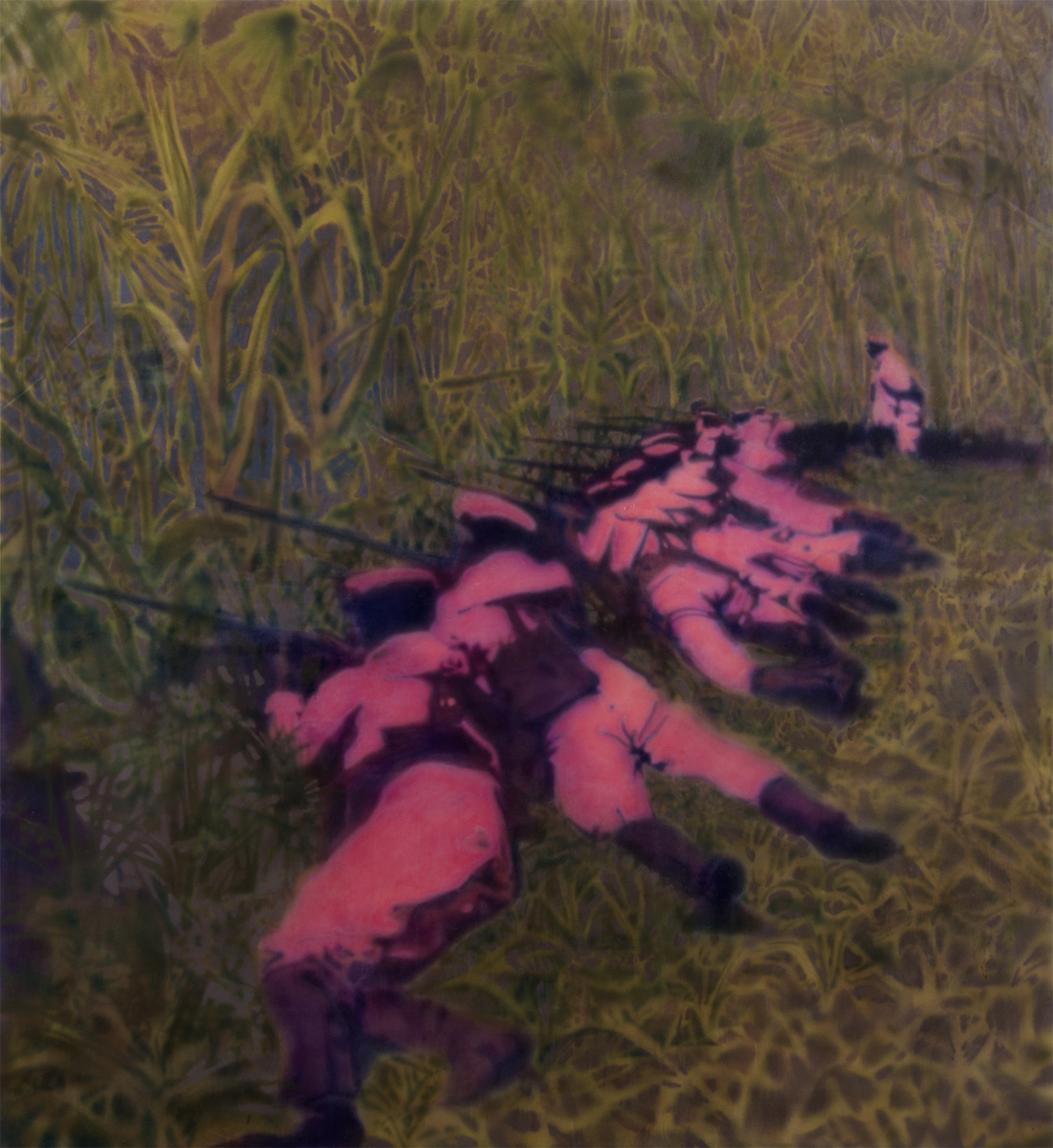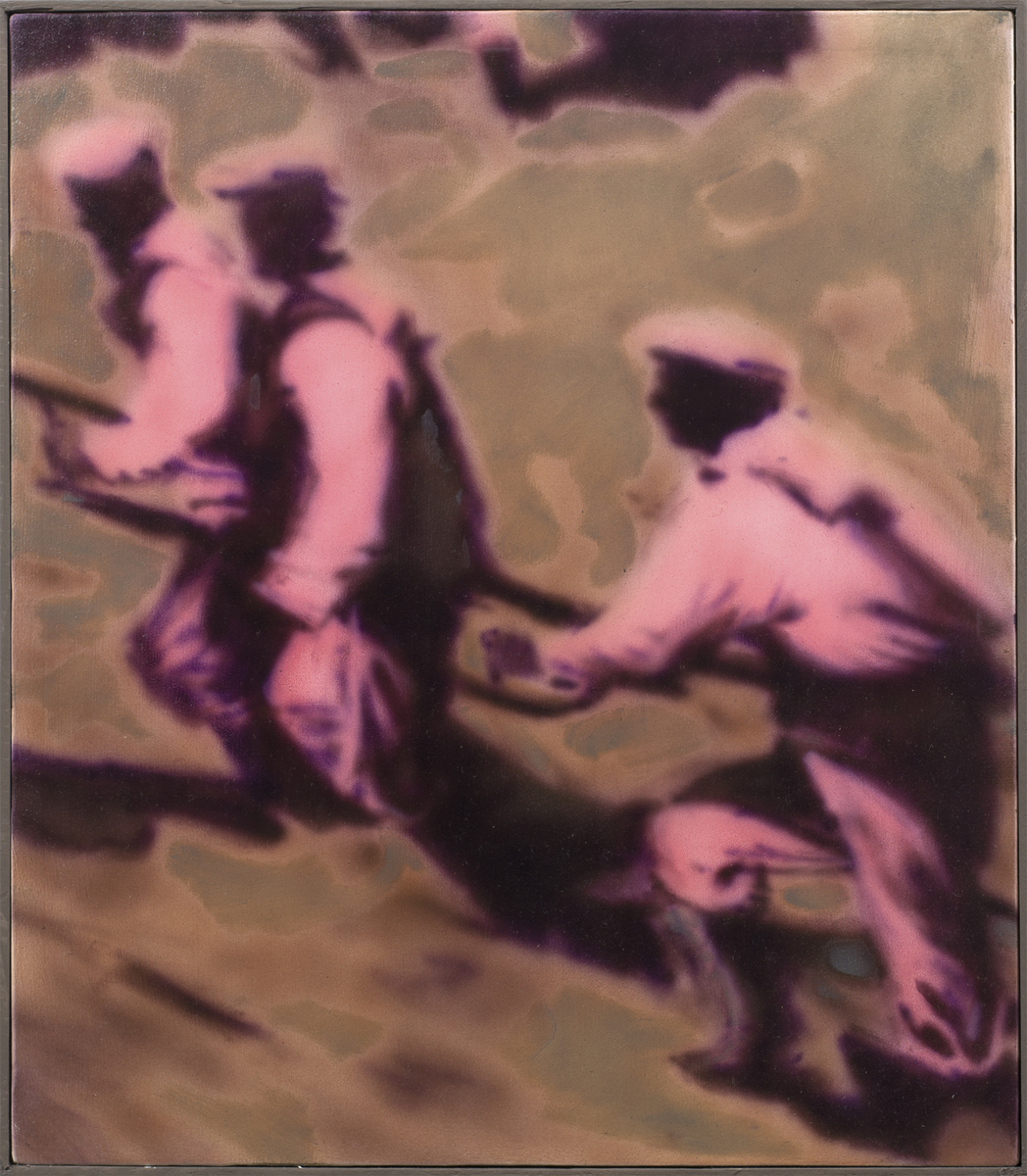 Parte integrante della mia ricerca è la traduzione dell’immagine dal linguaggio fotografico a quello pittorico. Questo mi consente una mediazione delle informazioni riportate, che non saranno più strettamente legate al racconto del reale, datoci dalla fotografia, ma ne manterranno la struttura. È chiaramente esposto l’interesse per il documento storico e una sua rielaborazione che ne propone letture distanti dal semplice evento narrato.