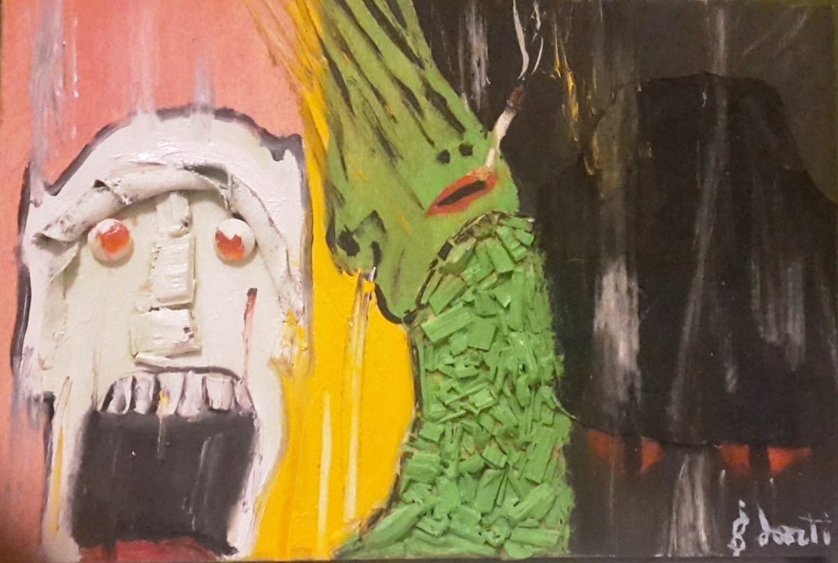 ”Stefano Sarti in arte “ESSE”, è un’artista autodidatta. Nasce a Roma nel 1978,laureato in Economia Aziendale vive e lavora a Roma.Fin da bambino sviluppa una spiccata attitudine per il disegno e la pittura,tutto ciò che è creativo lo appassiona .Trasformare l’intuizione , un’atmosfera , un’immagine in un lavoro artistico rappresenta la concretizzazione delle sensazioni. La sua attenzione viene presto dedicata alla pittura di pannelli in legno ,cartone e tele , sia ad olio che in acrilico e vernici .I suoi quadri sono spesso sviluppati attraverso l’utilizzo di elementi naturali e materici. Si dedica anche alla creazione di sculture in materiali grezzi come rete metallica , listelli e rami di legno , carta pesta. I suoi lavori rappresentano spazi astratti, figure surreali , punti di vista alternativi.”