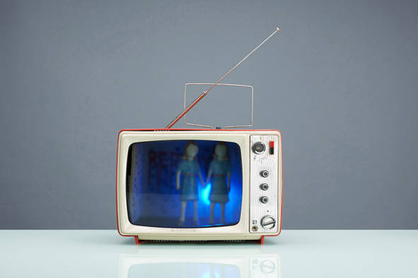 Questa serie di televisori modificati gioca con il ruolo del guardare. Viene rovesciato questo aspetto. Invece di guardare verso il mondo si guarda nell’interno dell’apparato stesso. Li’ si vede una scena chiave di un film importante. Per esempio una scena del film ”a space Odyssey” di Stanley Kubrick. Una scena particolare, tridimensionale e statica. Il film stesso si svolge nel cervello del visitatore. Un lavoro ironico, che interpreta l’aspetto dell’abitudine di visione umana.