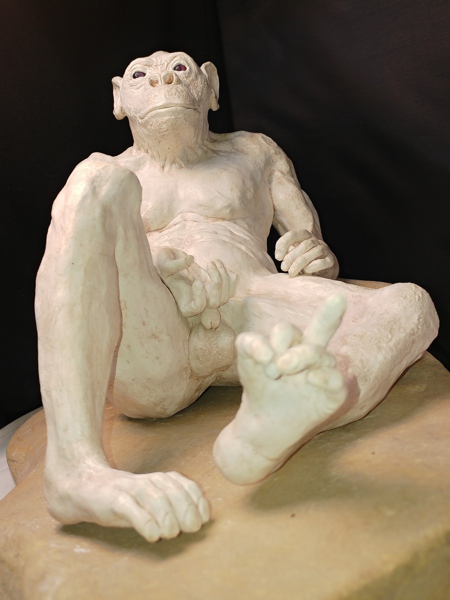 Lavoro in gesso chiamato: io Bonomo, alludendo al primate di razza Bonobo che gestisce la vita sociale in maniera particolare ”forse un po’da imitare”.