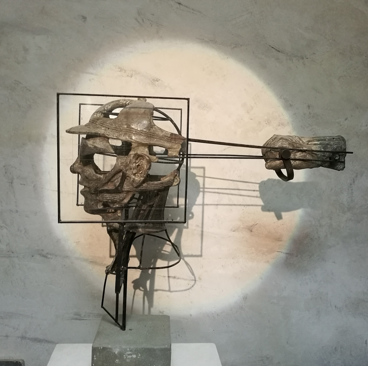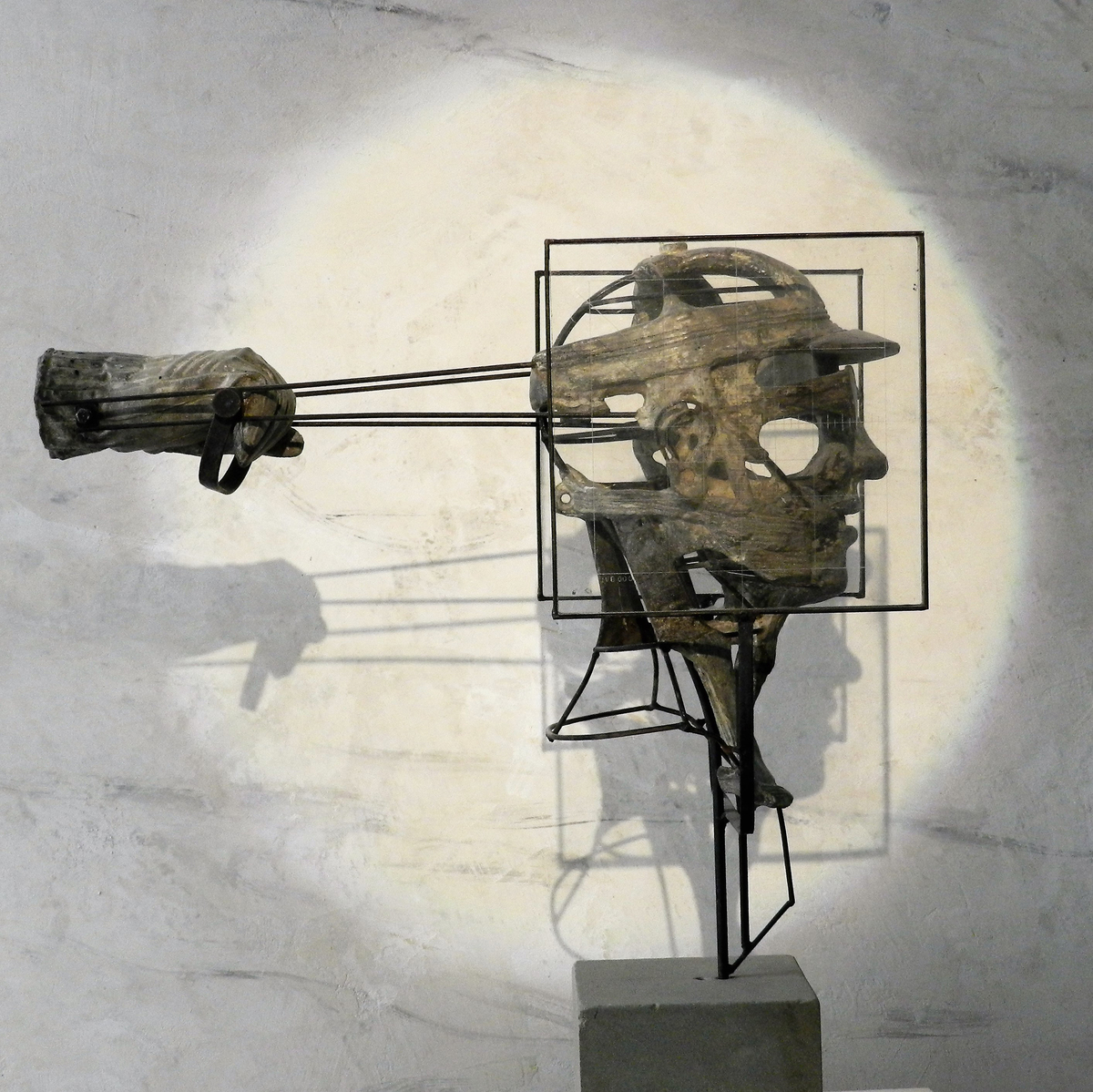 La scultura è costituita da un’armatura portante in ferro che sostiene la parte piena, l’effetto pittorico che ne deriva dall’articolazione dei volumi nel vuoto, toglie pesantezza e stabilità della massa a vantaggio della instabilità e alla variazione dinamica dello spazio.