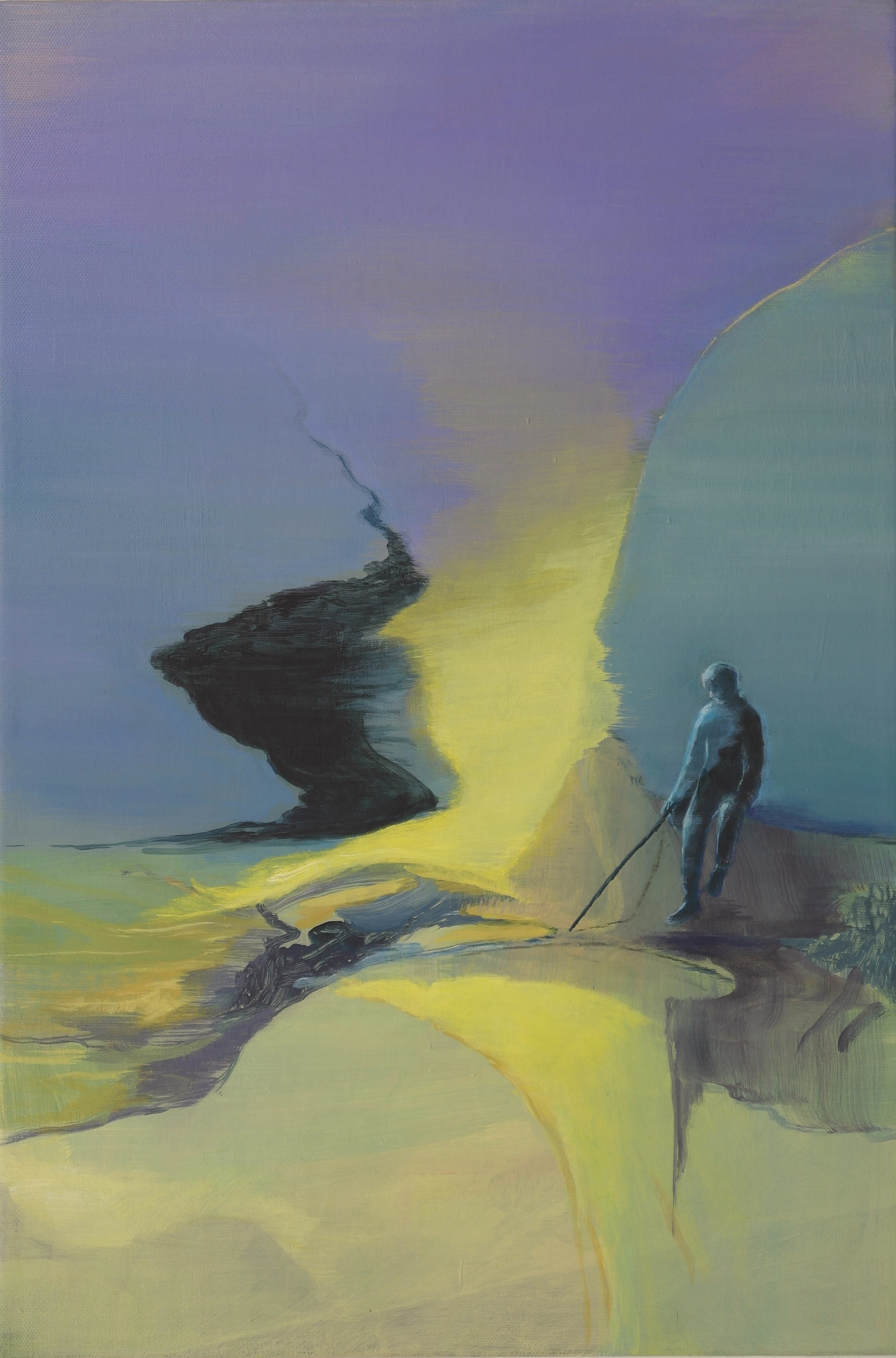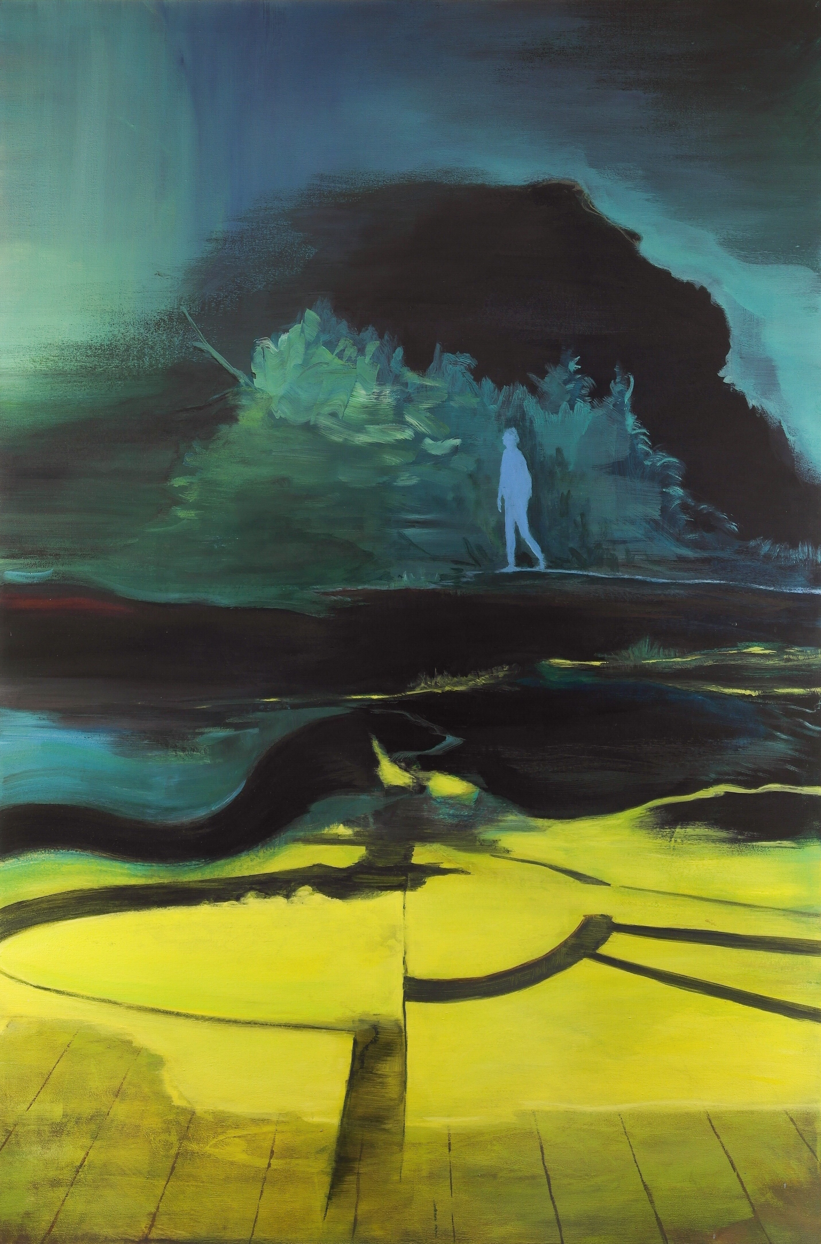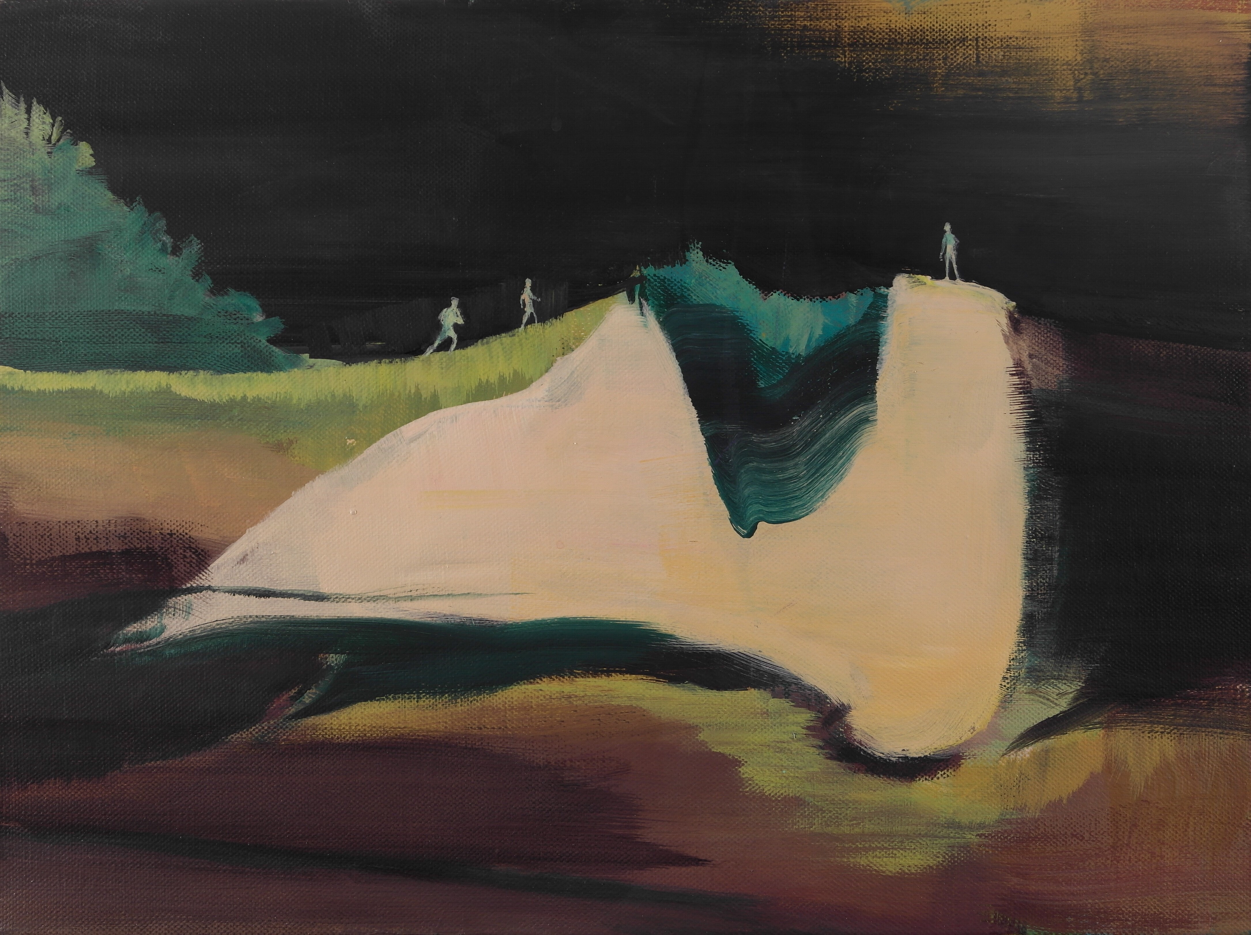 Nel mio processo creativo non c’è una destinazione predeterminata, un’immagine ideale a cui tendere attraverso un progetto dettagliato. È un processo lento, basato su una progressiva sovrapposizione di livelli pittorici differenti che danno forma alla scena in modo non preordinato, come una sorta di orogenesi del paesaggio, e in cui inserisco la presenza umana per evocare una dimensione narrativa.