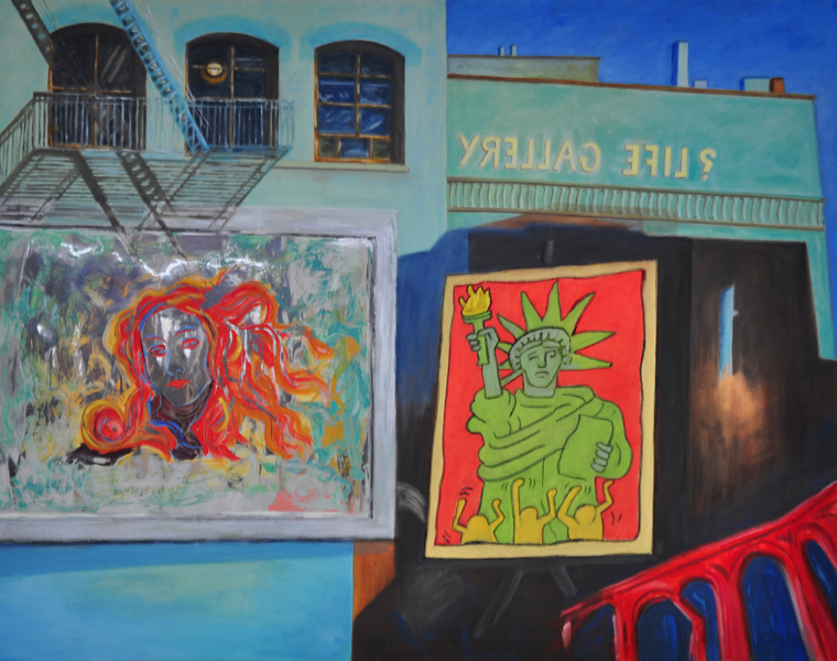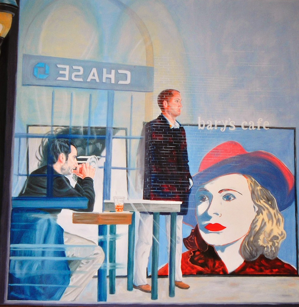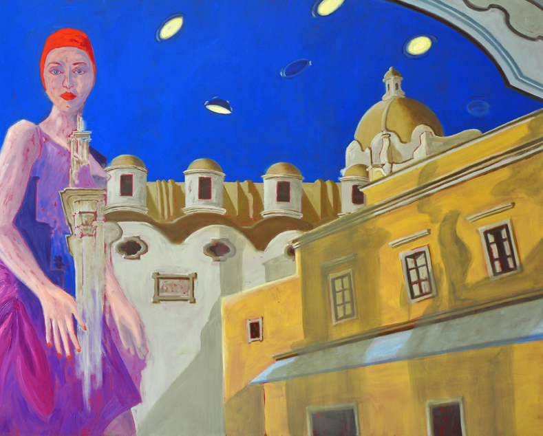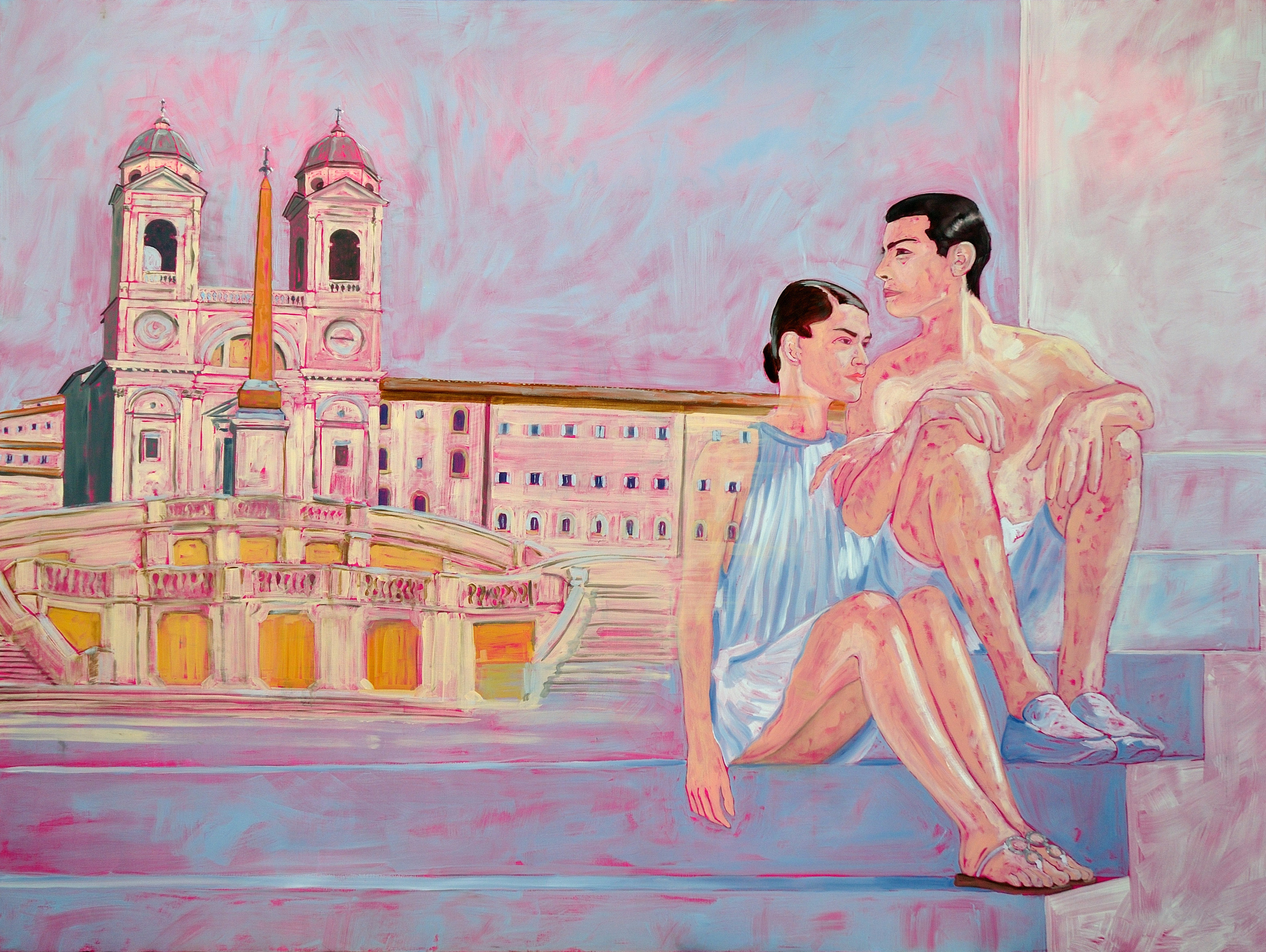Il dipinto vuole essere una Metafora concettuale. Esso racconta una realtà in parte vera e in parte apparente, prodotta dai riflessi. Sul lato sinistro si vedono la chiesa e la scalinata di Trinità dei Monti a Roma. Sul lato destro si vedono due giovani con un abbigliamento essenziale, che sembrano seduti su un gradino della scalinata. Ma invece non è così: le due figure umane sono due manichini in un negozio di abbigliamento che affaccia sulla piazza, la cui vetrina riflette la scalinata di Trinità dei Monti.