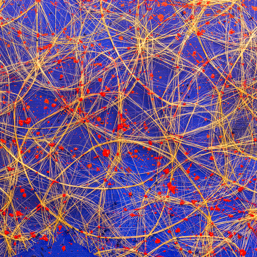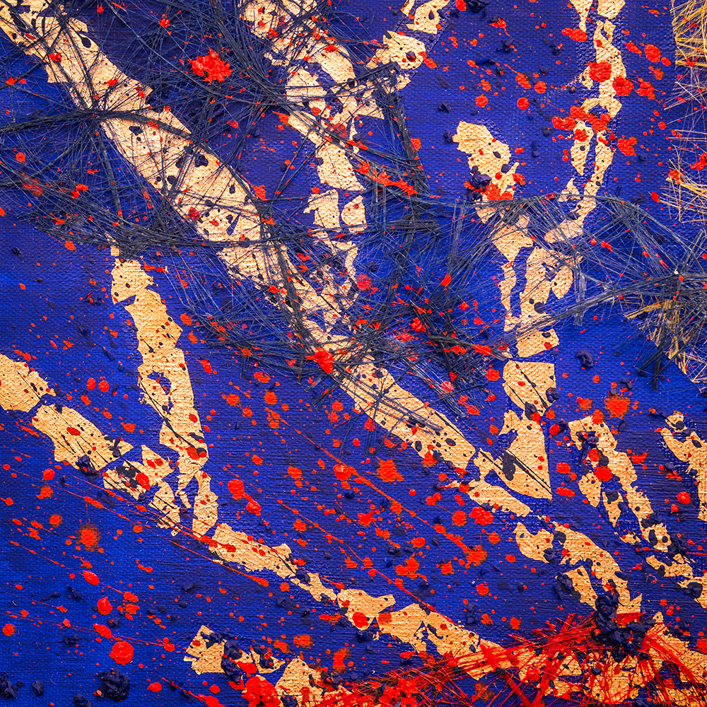 Naissance cosmique canvas, acrylic, crystal, mixed technique, leaves imitation gold, paper 100 x 50 cm each (dyptique)