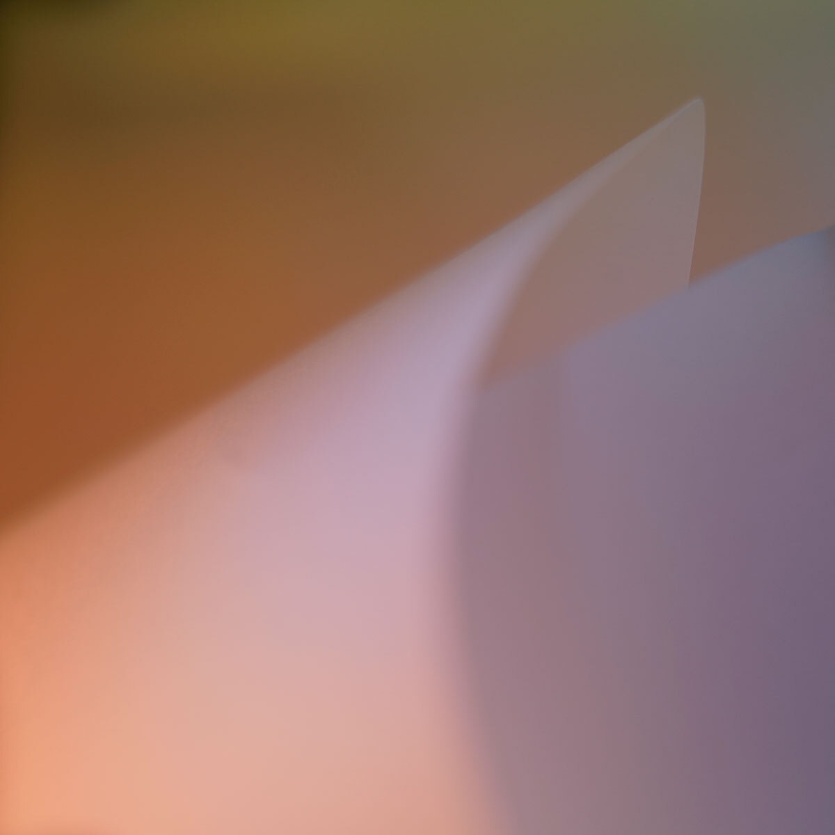 This is an image of a sculpture that was created from paper, plastic and light with colored gels. This was then photographed and is NOT manipulated by Photoshop. The concentration here was more about color fields, volume. and light.