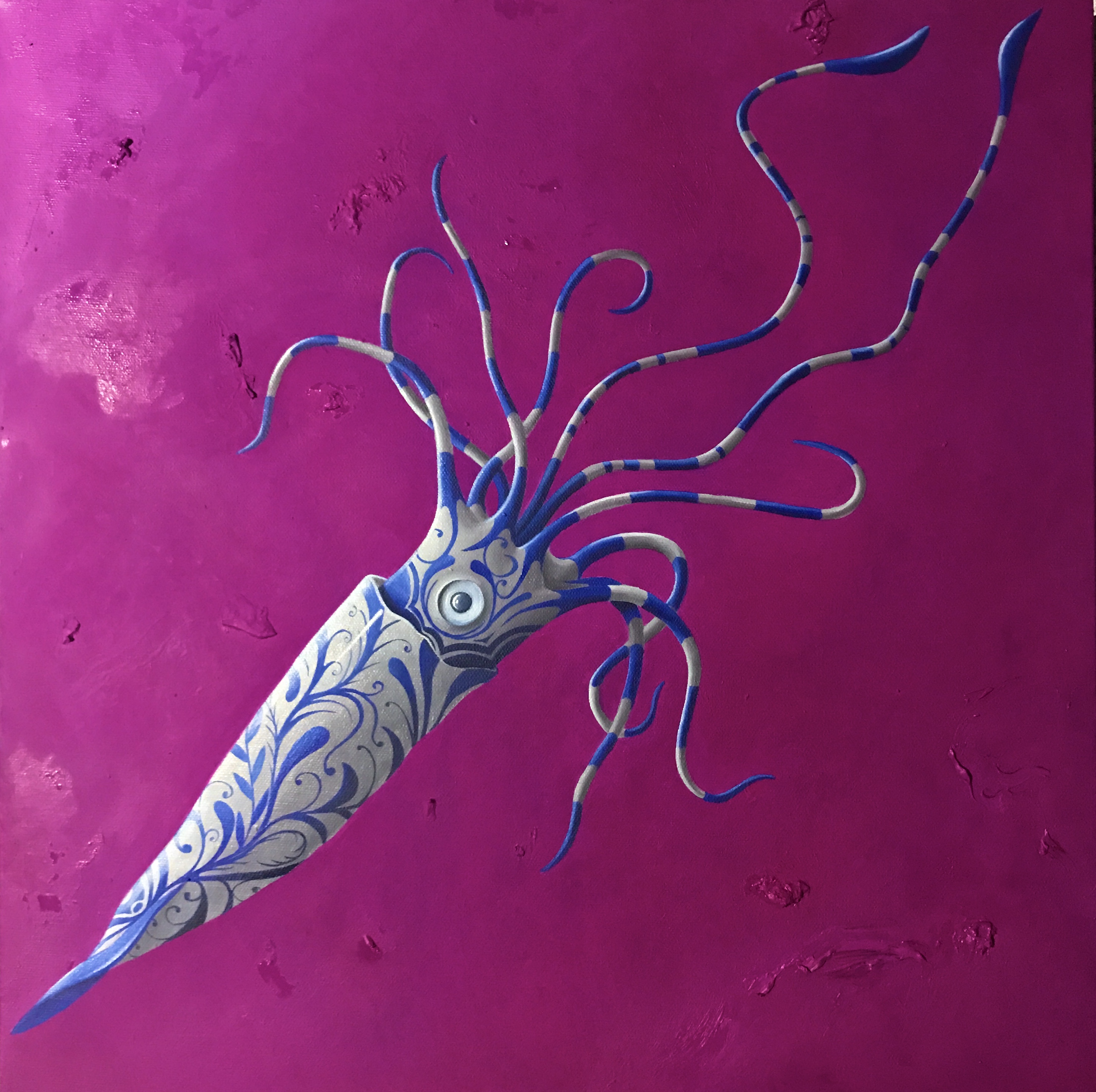 ”Impronta blu” nasce in un periodo di crisi sanitaria mondiale che ha portato la popolazione italiana ad una chiusura generale, comportando l’arresto del flusso della quotidianità e la rinuncia alla straordinarietà nell’ordinarietà. Questo momento eccezionale, fondamentale per l’evasione da vite lineari, è raffigurato da un pesce san Pietro in ceramica blu in quanto il mare e la pesca sono per l’artista àncora di salvezza, rifugio purtroppo perso in quel periodo. Il pesce di ceramica appare come un oggetto delicato ma prezioso perché si è soliti capire l’importanza di qualcosa nel momento in cui essa viene meno.