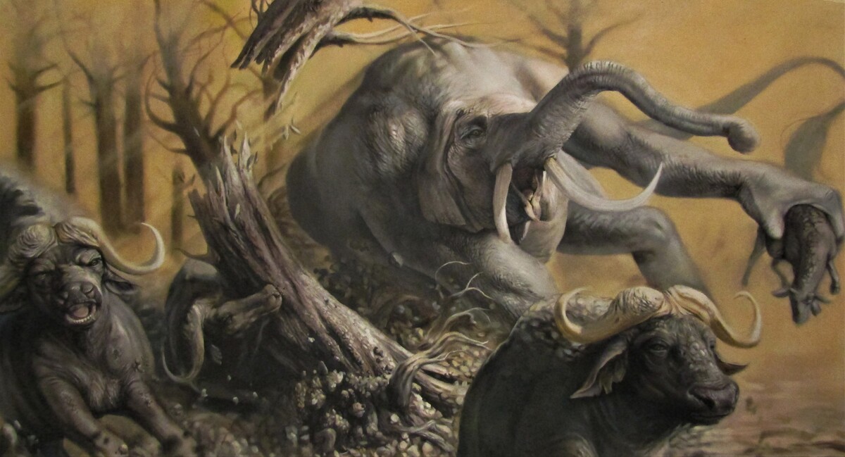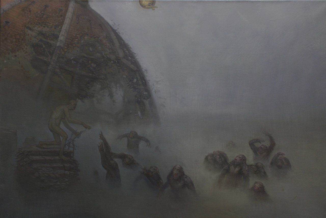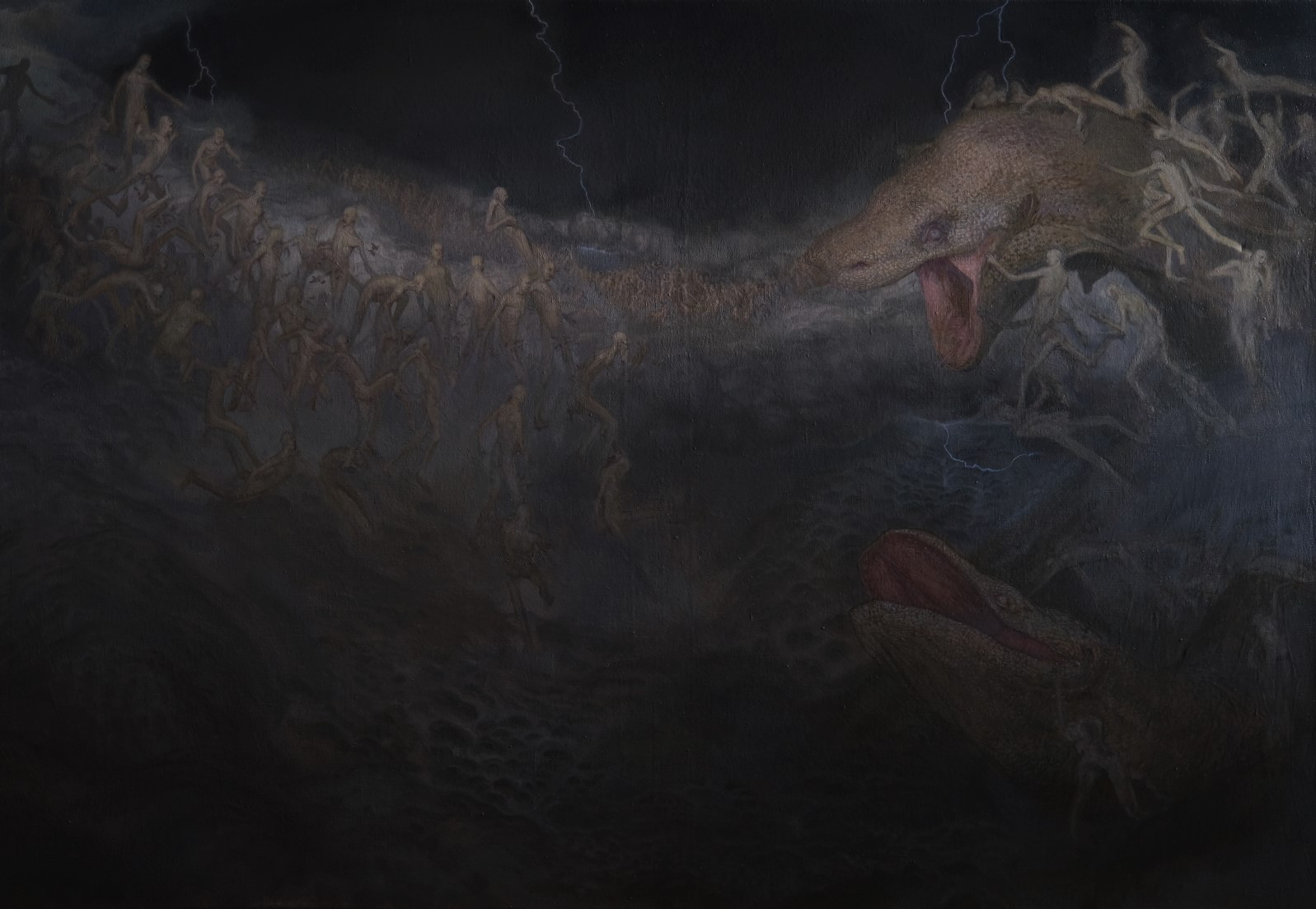 Lì, ha completato la sua prima tela 90x180cm, intitolata ”Behemoth”.