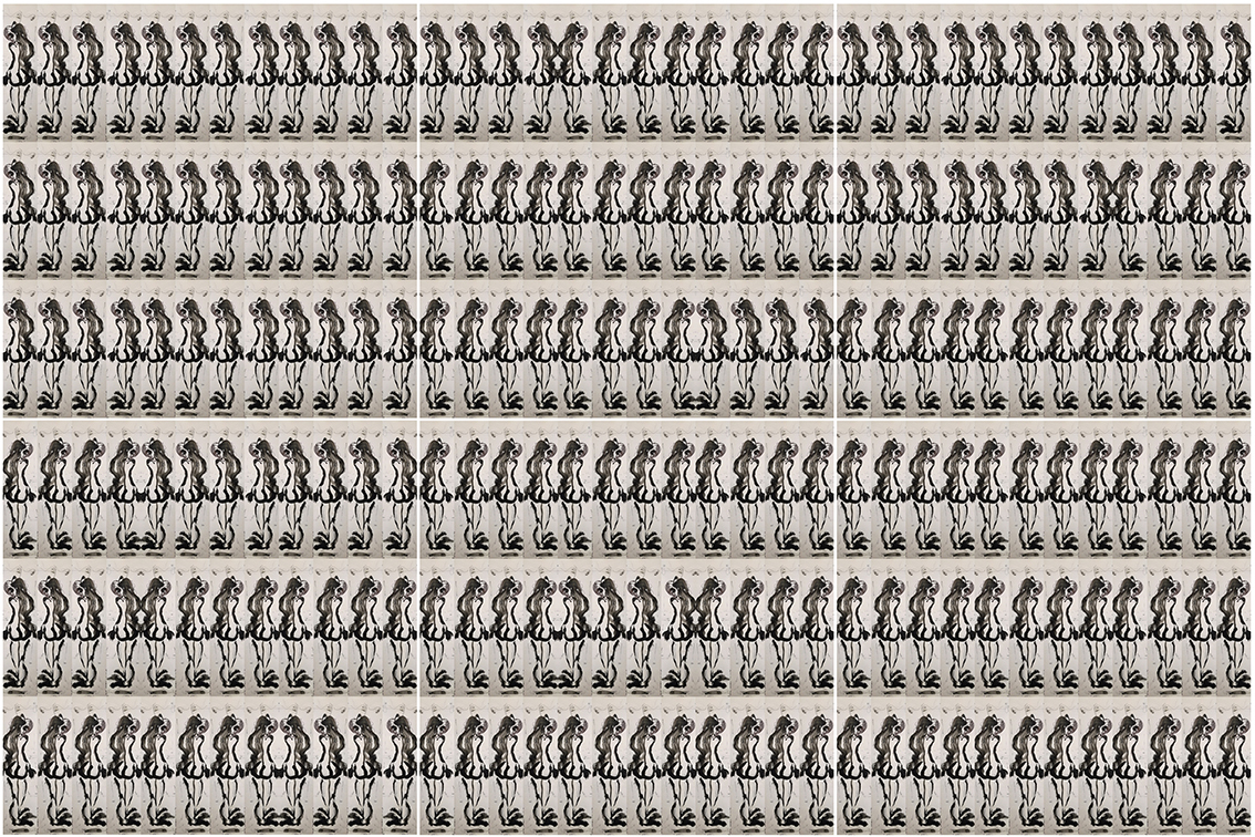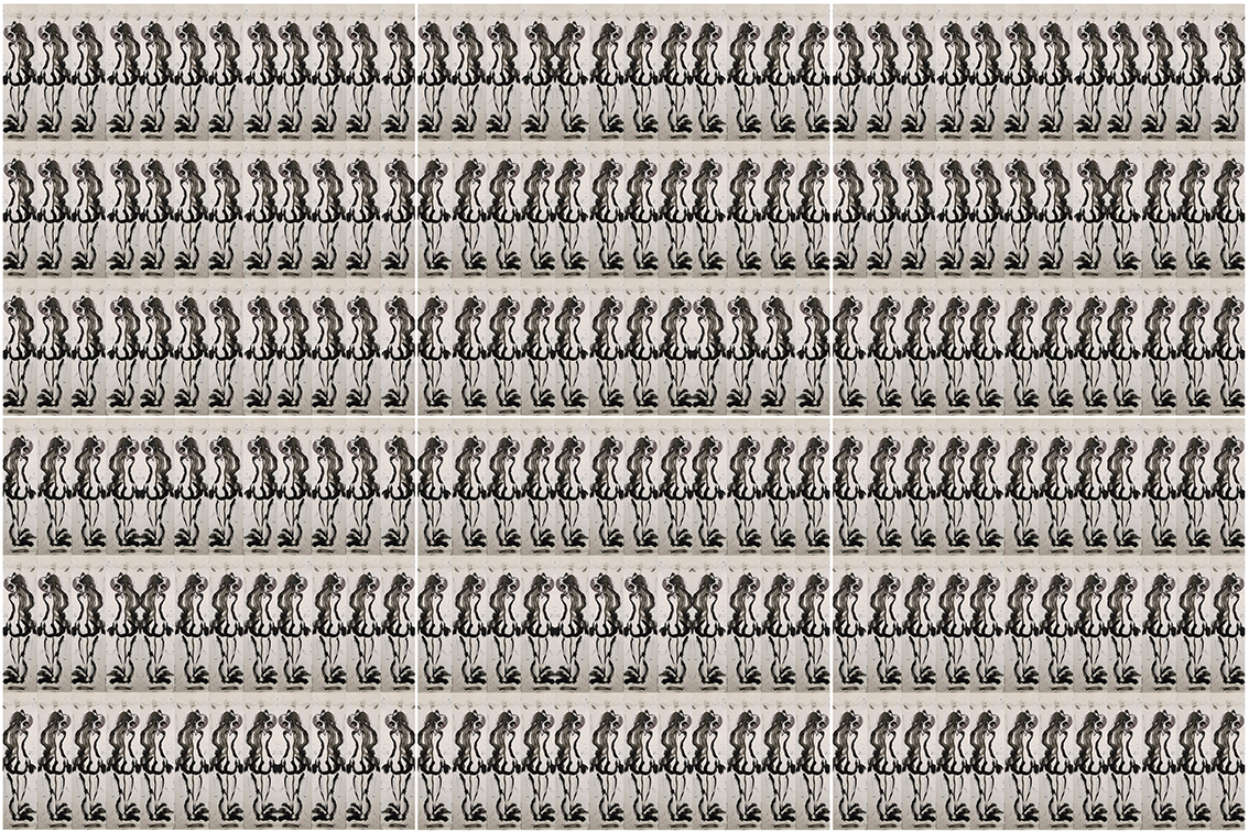 L’opera celebra l’inarrestabile moto perpetuo di cloni senza meta, che sembrano cercare una strategia di uscita e che raramente si ri-conoscono.