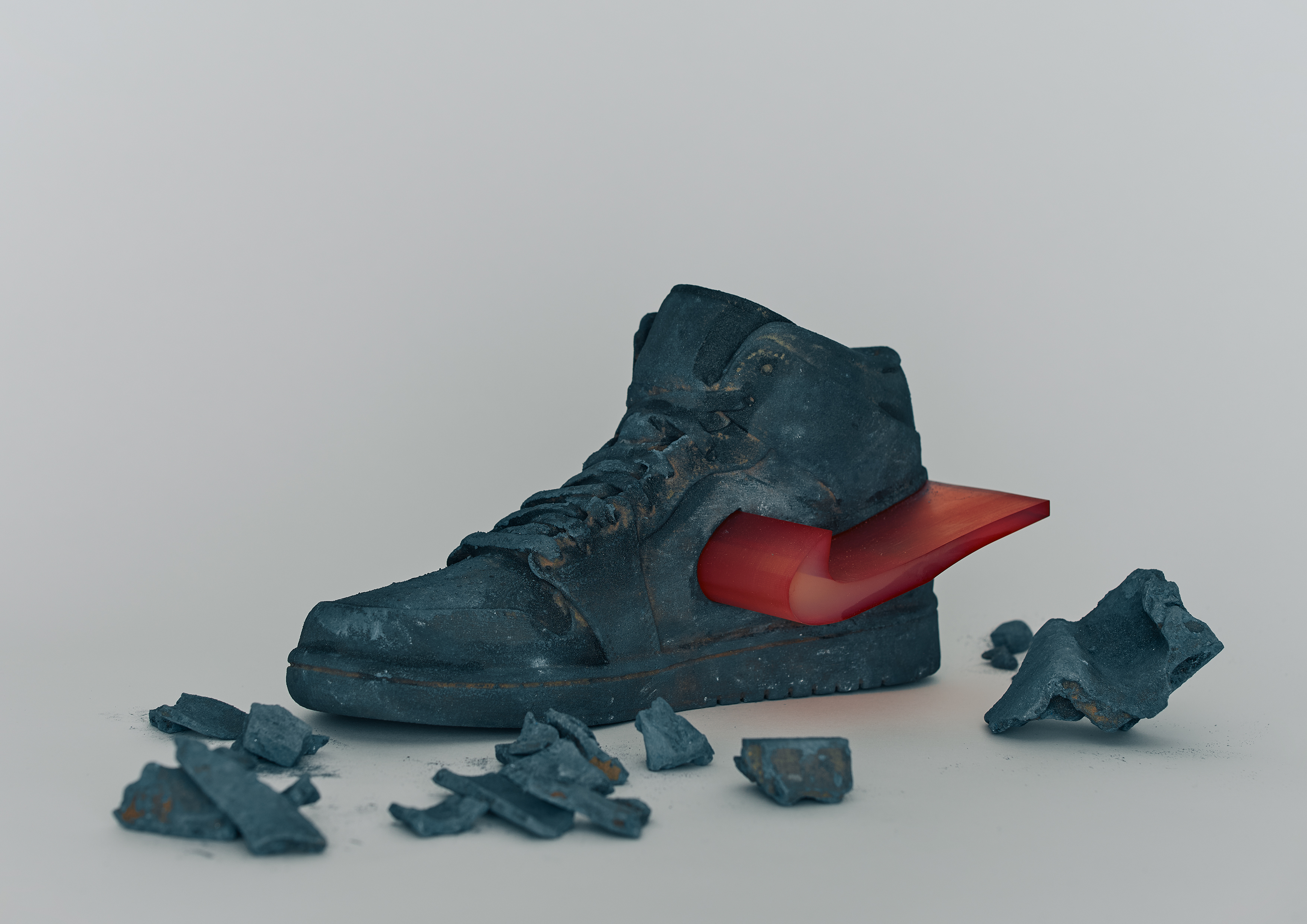The Nike Air Jordan 1 is made of sand and the logo mark is in acrylic.