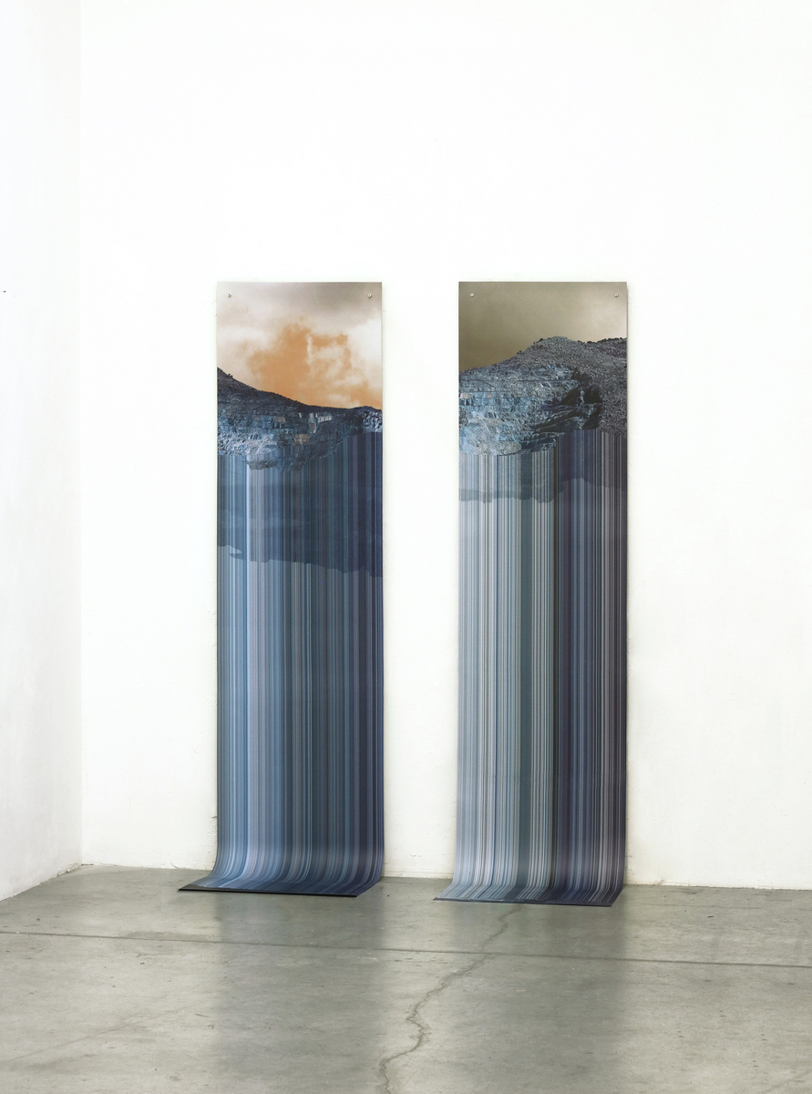 Altare è un’opera che riflette sulle conseguenze del rapporto tra uomo-oggetto-ambiente. La struttura in ferro accoglie e sostiene la fotografia di una parete rocciosa, dove al suo interno è stata scavata una cava, una montagna svuotata come un altare sconsacrato. La catena montuosa raffigurata proviene dalla provincia palermitana, più precisamente tra Capaci e Carini, zona caratterizzate da un tessuto storico-culturale ricco di avvenimenti abusivi e mitologici. La struttura si forma volutamente tra un inginocchiatoio per pregare e una rampa, due elementi che mettono in discussione il ruolo che ha l’uomo nella relazione tra ambiente e oggetto.